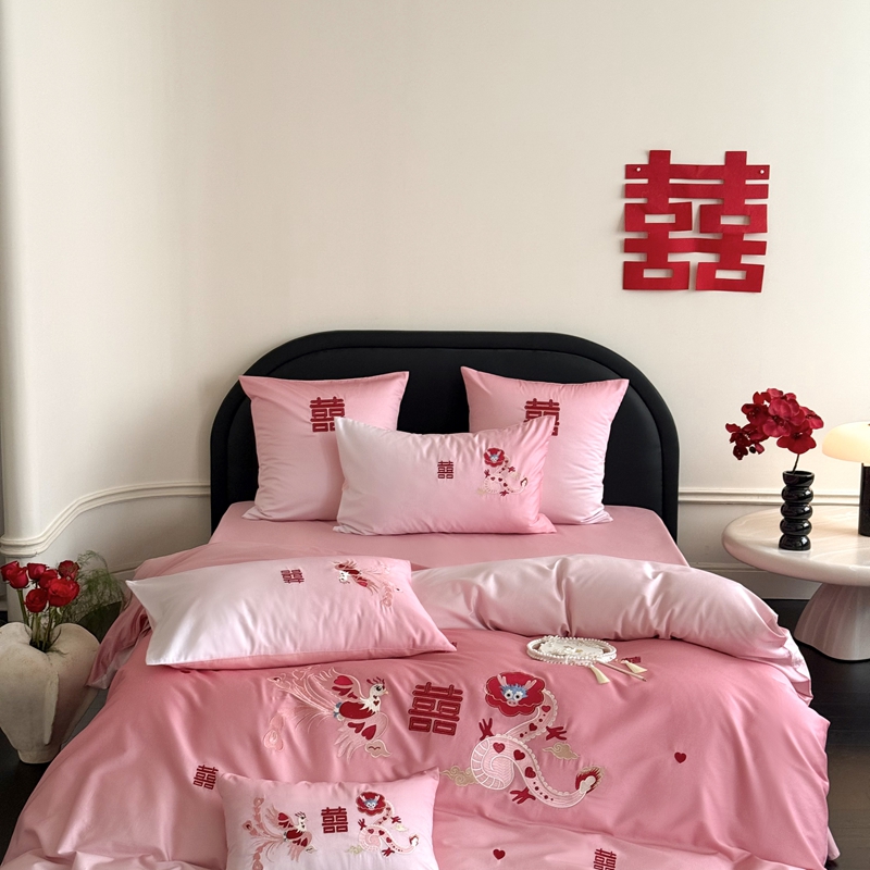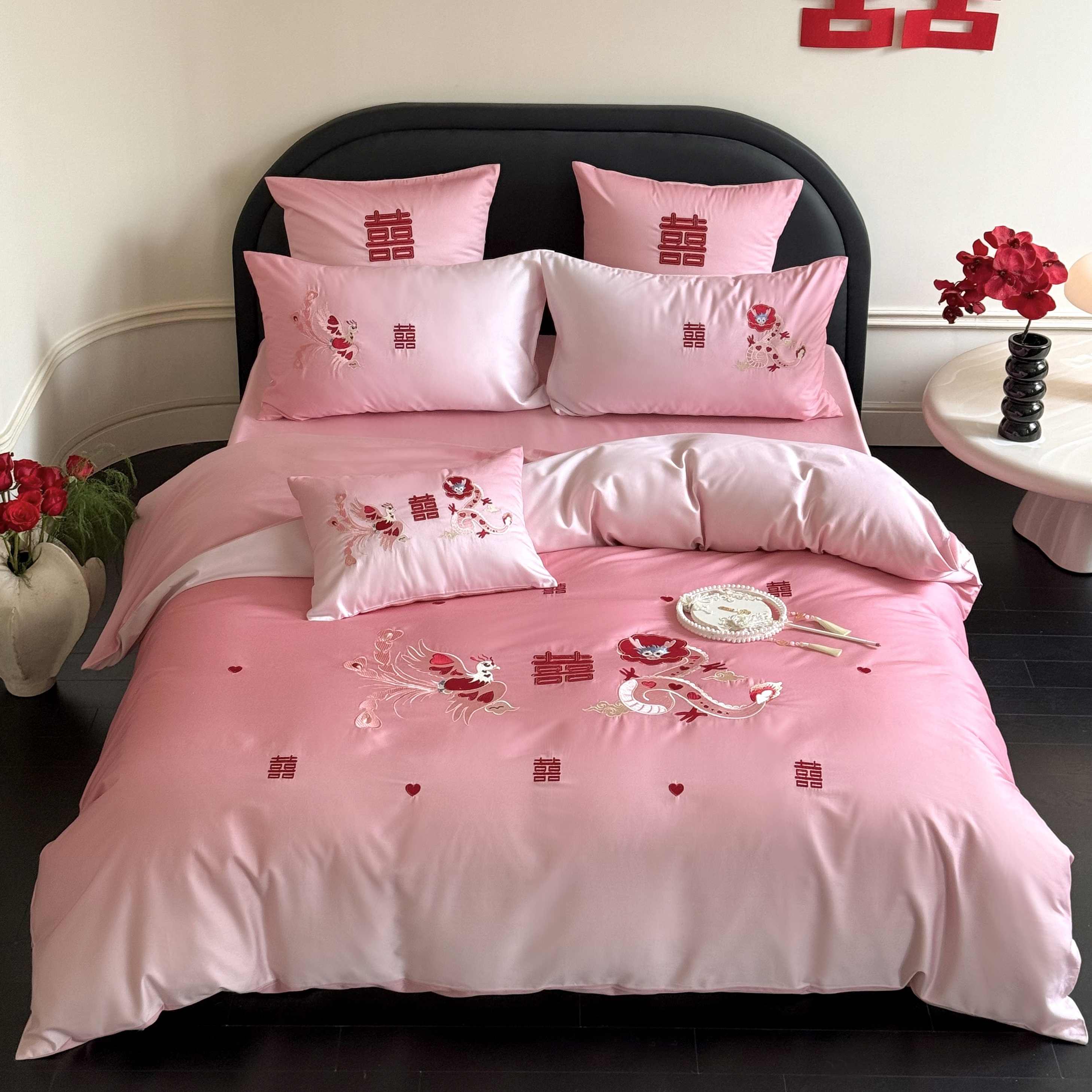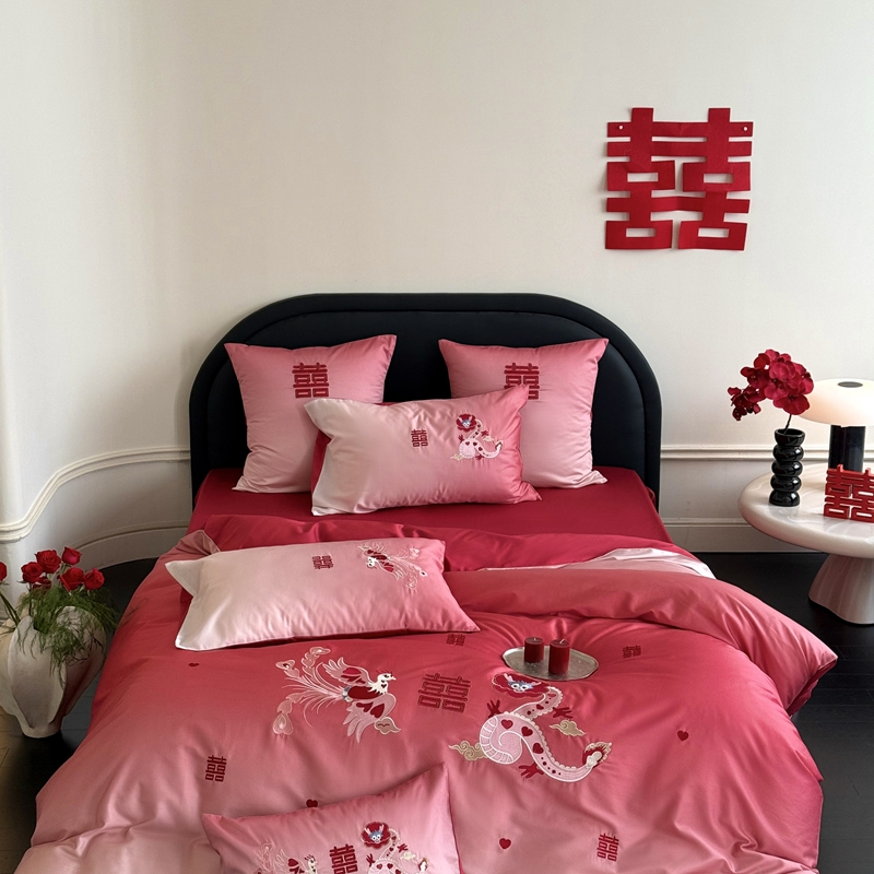 (总)江涞 2026新款100支长绒棉进口高端刺绣可摘卸流苏四件套-迎喜(淘宝券后不低于 418/438),迎喜