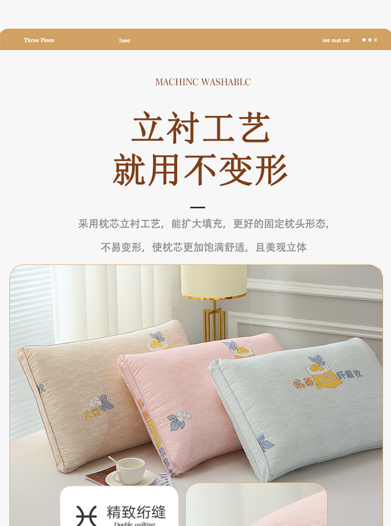 商品名称:(总)四川牛皮席 2025新款热熔定型水洗枕(抗菌大豆) 舒适柔软回弹枕头枕芯
