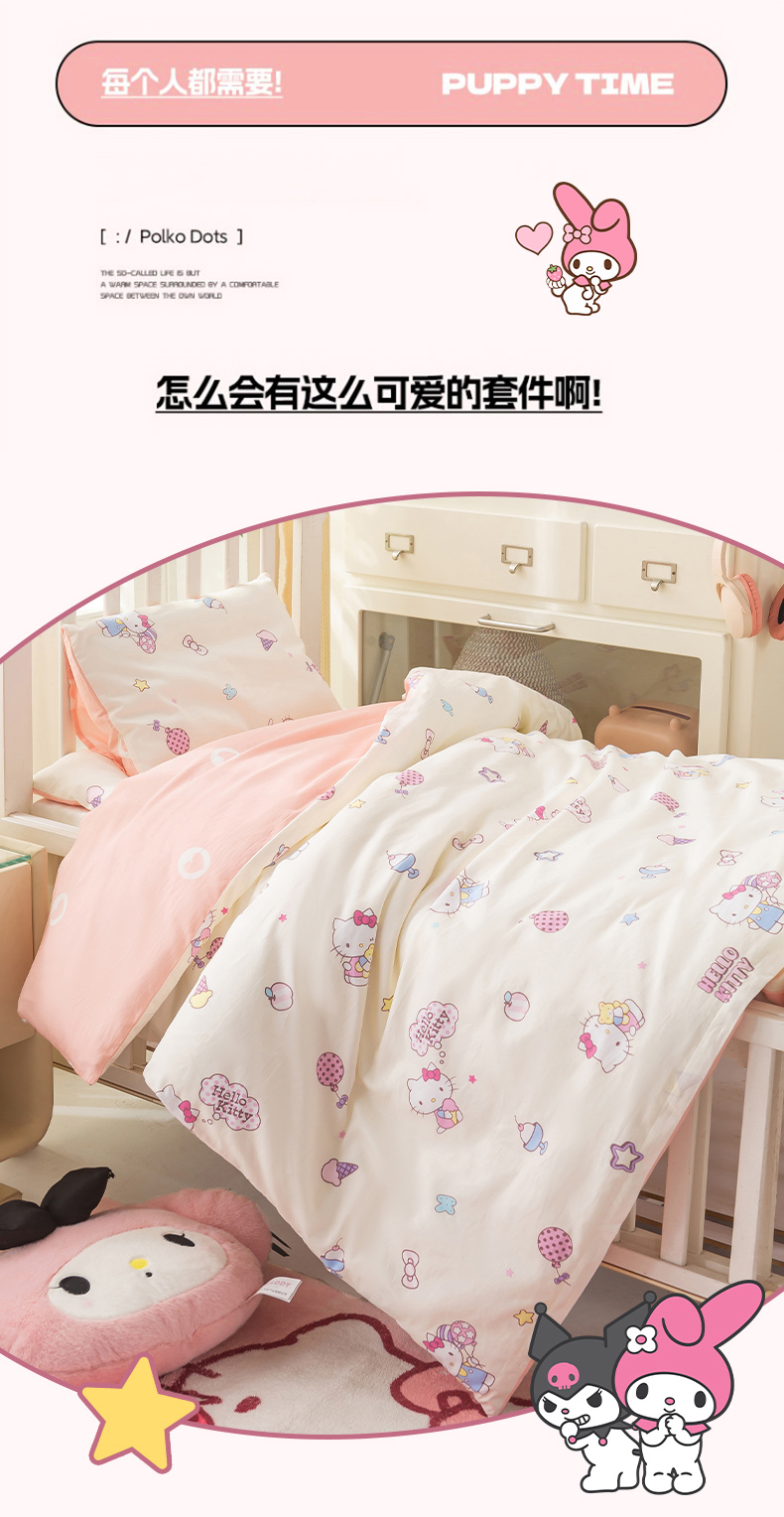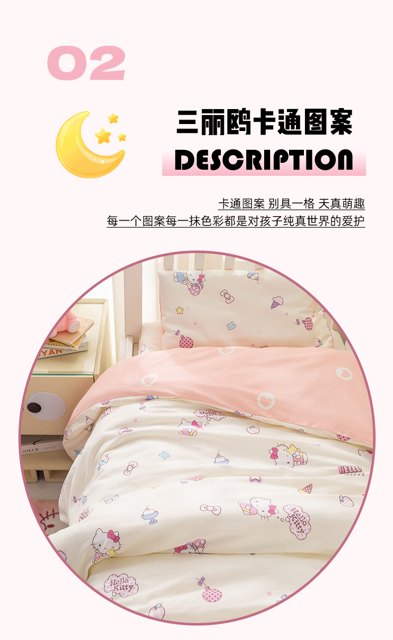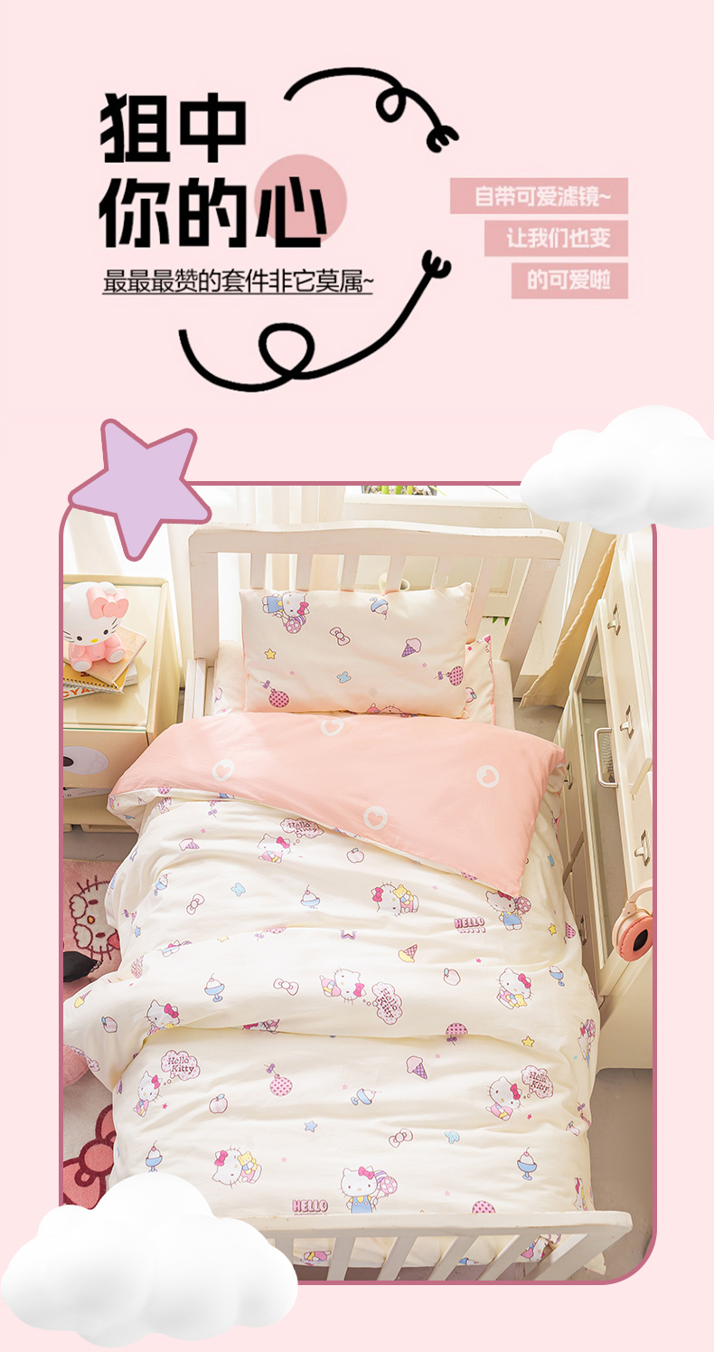 商品名称:博雅 2025新款三丽欧全棉纯棉幼儿园三套件宿舍三件套上下铺三件套 美美KT