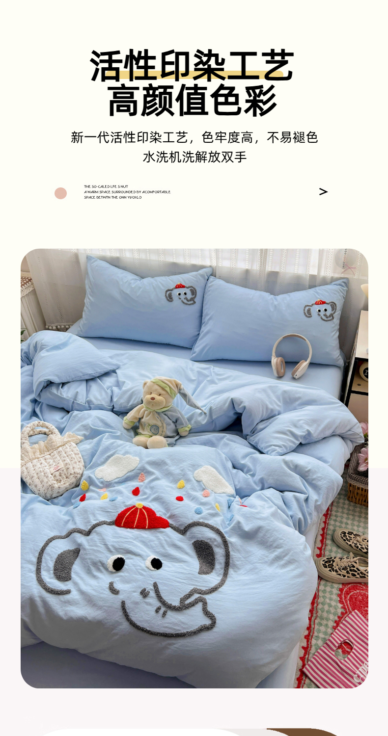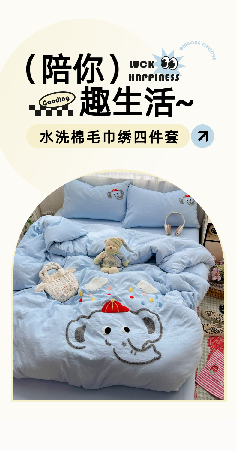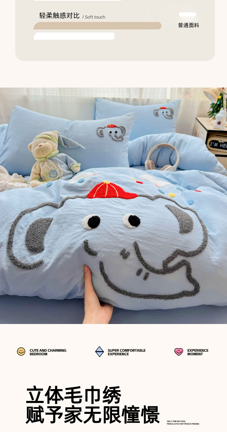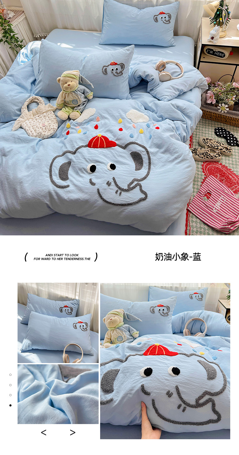 当前位置: 91家纺网 > 商品网购 > 床品套件 > 四件套 > 水洗棉四件套 > 凯洛奇 2025新款软糯水洗棉毛巾绣卡通四件套-奶油小象 奶油小象-蓝