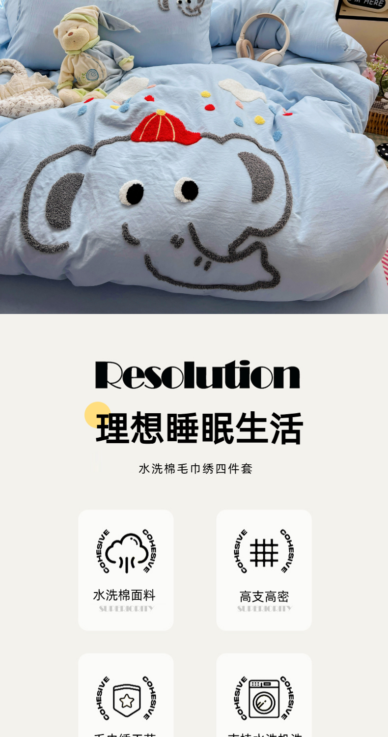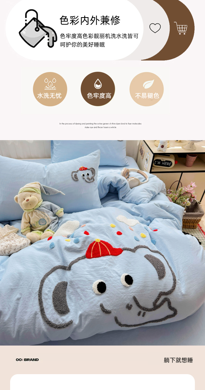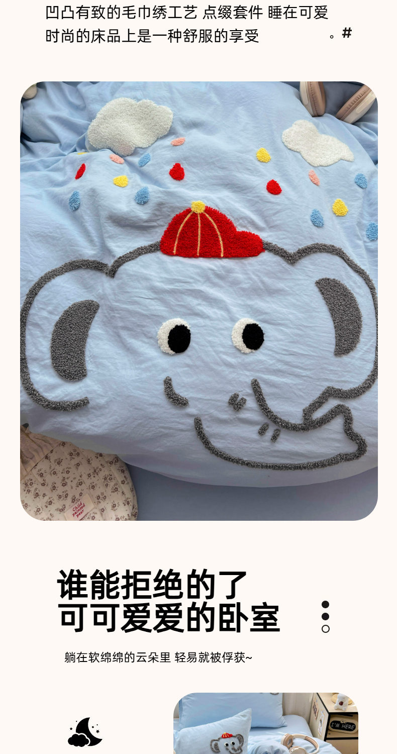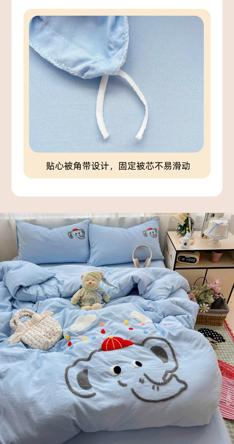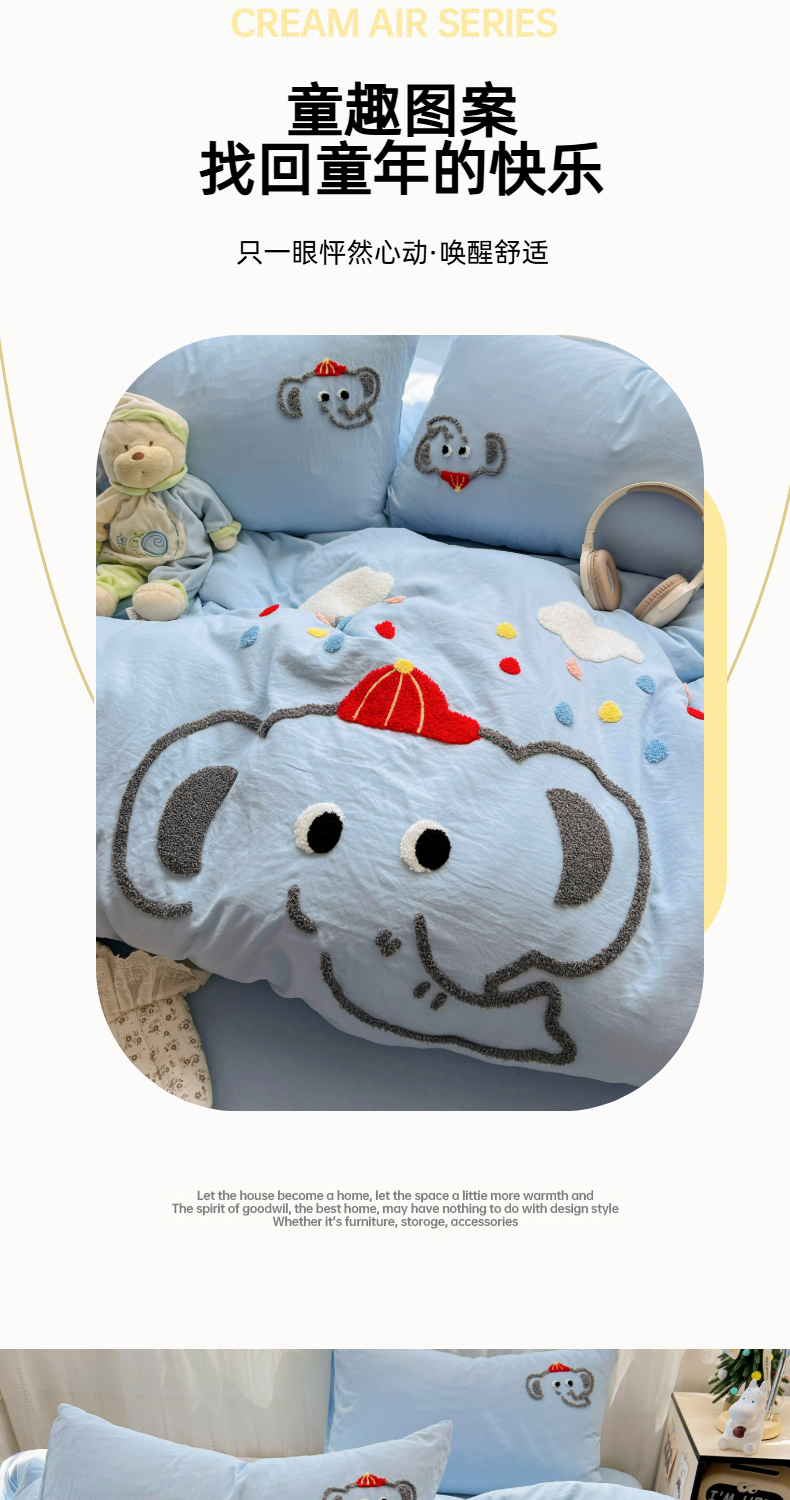 当前位置: 91家纺网 > 商品网购 > 床品套件 > 四件套 > 水洗棉四件套 > 凯洛奇 2025新款软糯水洗棉毛巾绣卡通四件套-奶油小象 奶油小象-蓝