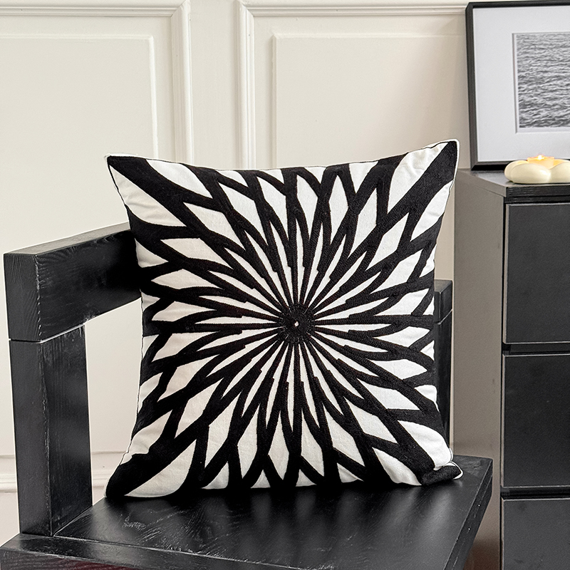 (总)诺可 2025新款全棉黑白简约系毛巾绣抱枕枕头枕芯
