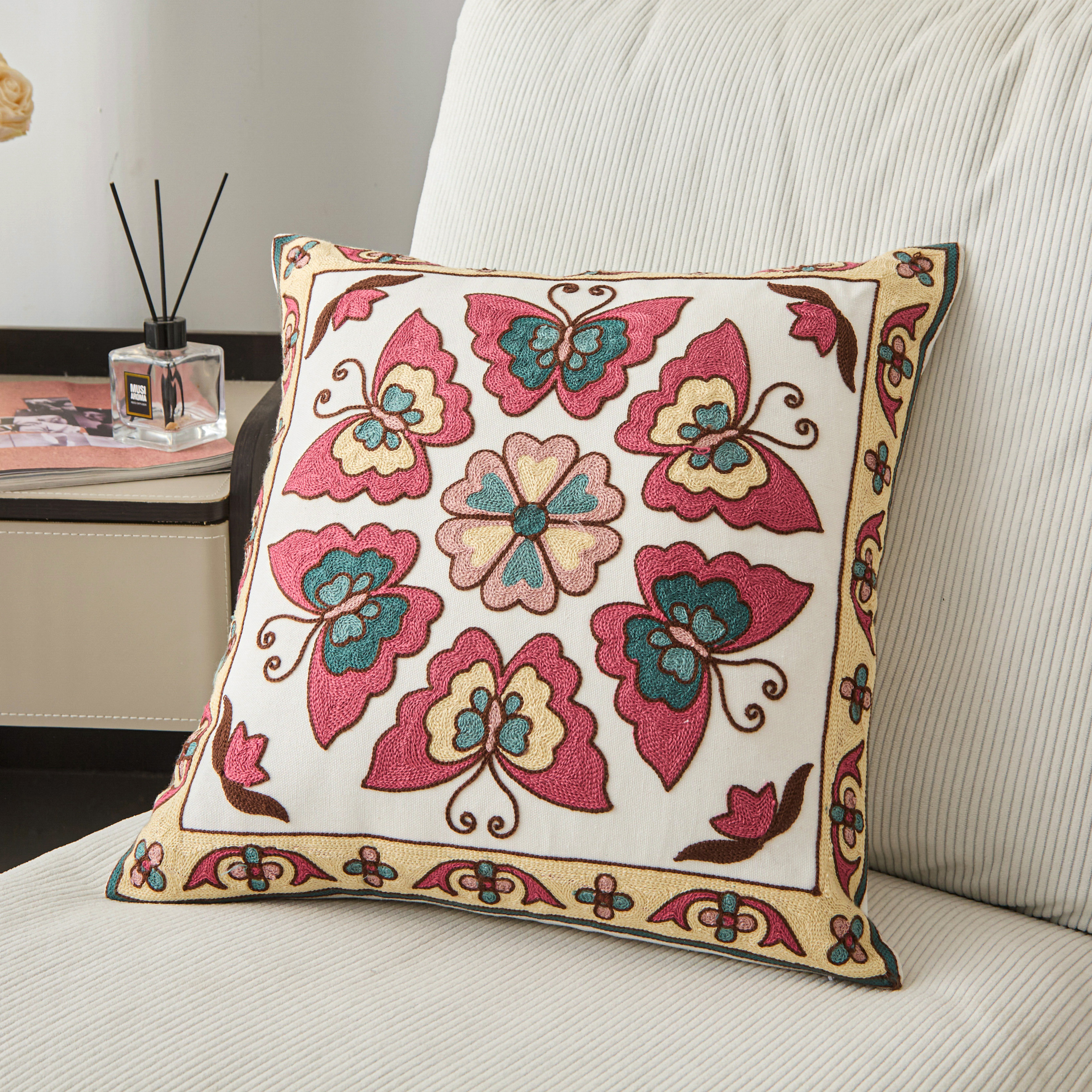 (总)诺可 2025新款全棉毛巾绣抱枕跨境花物语系列,组合,模特图,彩色石,蝶影,繁华拾光,粉蝴蝶,禾穗,花环,花卉-橙,花卉-粉,花雾,花盏,岚山,林礼,绿蝴蝶,蔓藤,木瑾花,南瓜,霓虹,柠檬叶,山奈,石榴蓝,石榴紫,树叶,禧朵,夏日铃兰,向阳花,星葵,叶坊,雨棠,枝瑾,紫蝴蝶,紫蕊,磨毛布单抱枕芯