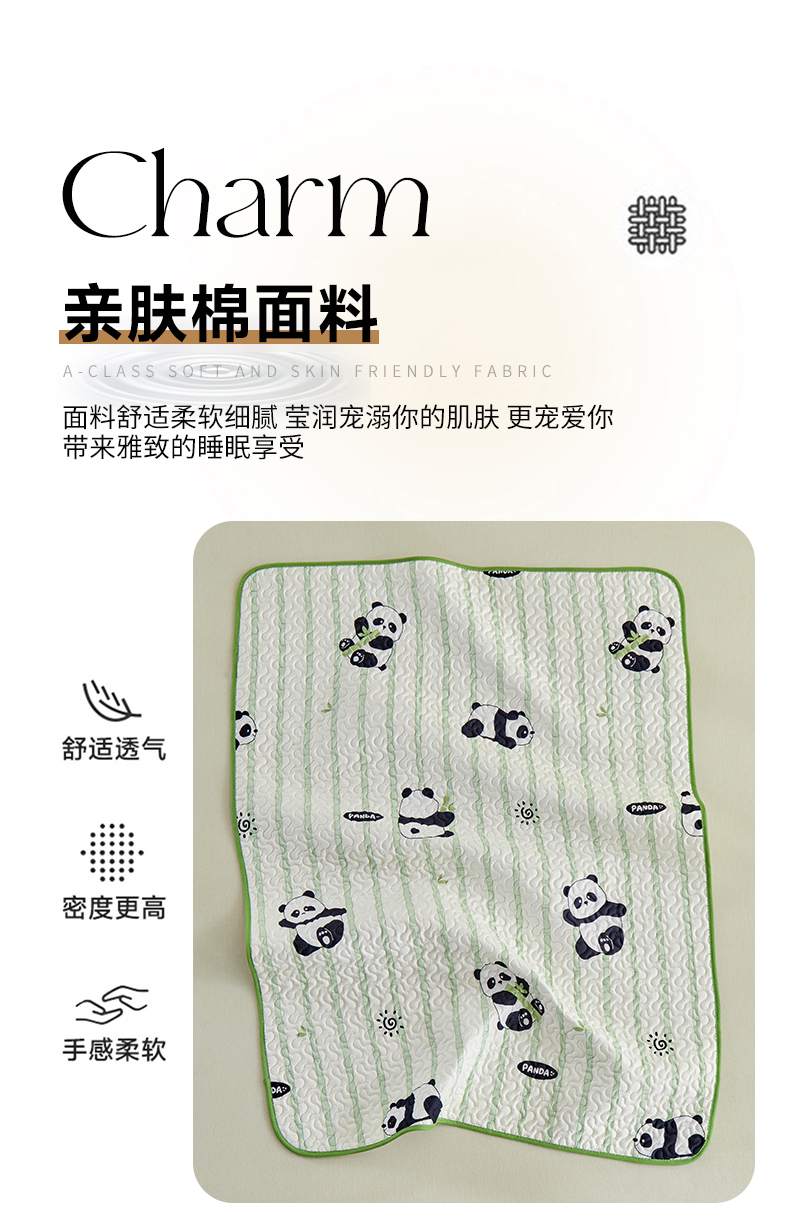 商品名称:芙绣家纺 2025新款亲肤棉隔尿垫婴儿童夏季防水透气可水洗大尺寸宝宝隔夜床单姨妈经期床垫 竹韵熊猫