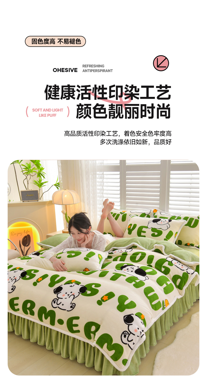 绒耀 2025新款菠萝格牛奶绒四件套 嗨皮狗