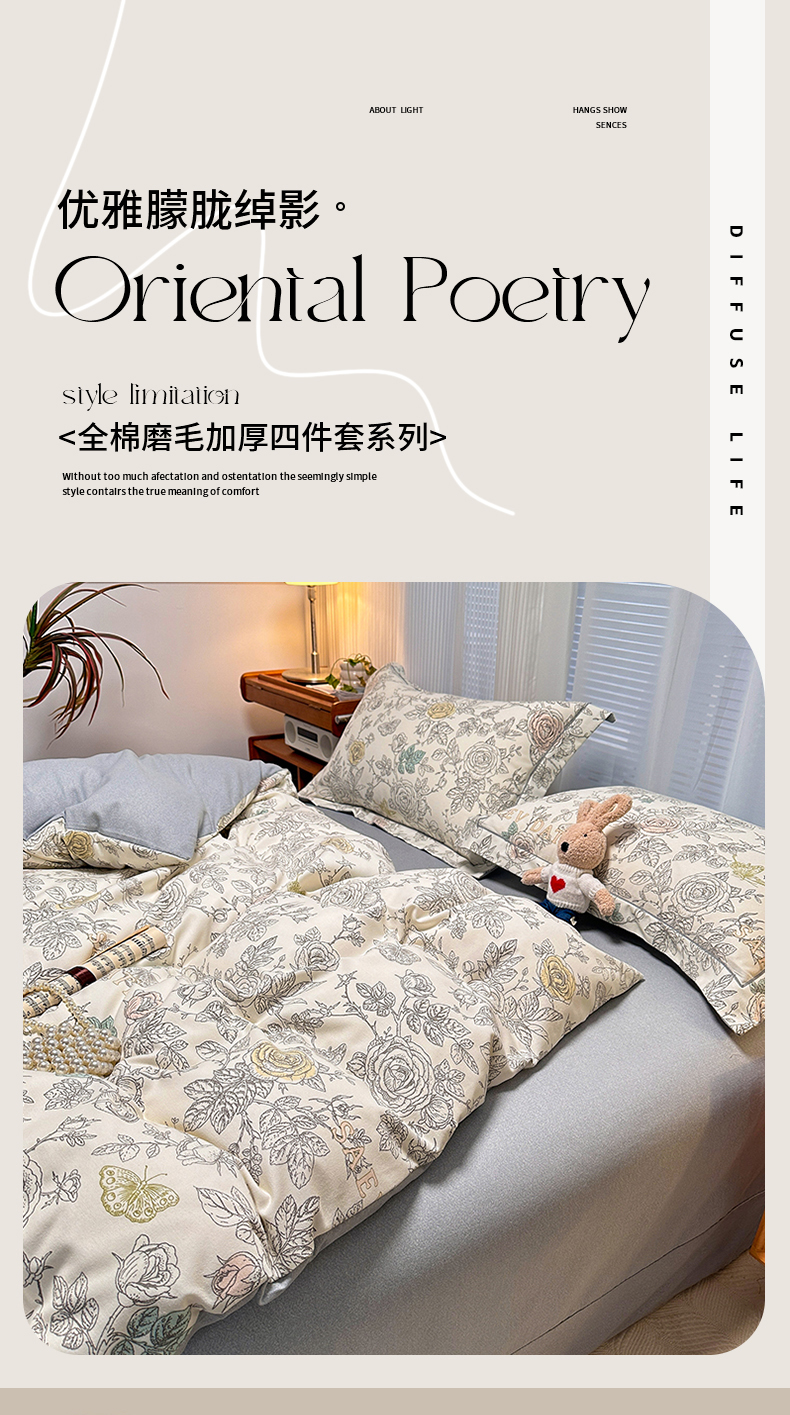 当前位置: 91家纺网 > 商品网购 > 床品套件 > 四件套 > 普通磨毛四件套 > 卡普家居 2025新款全棉纯棉磨毛加厚四件套系列-四件套 加州风情