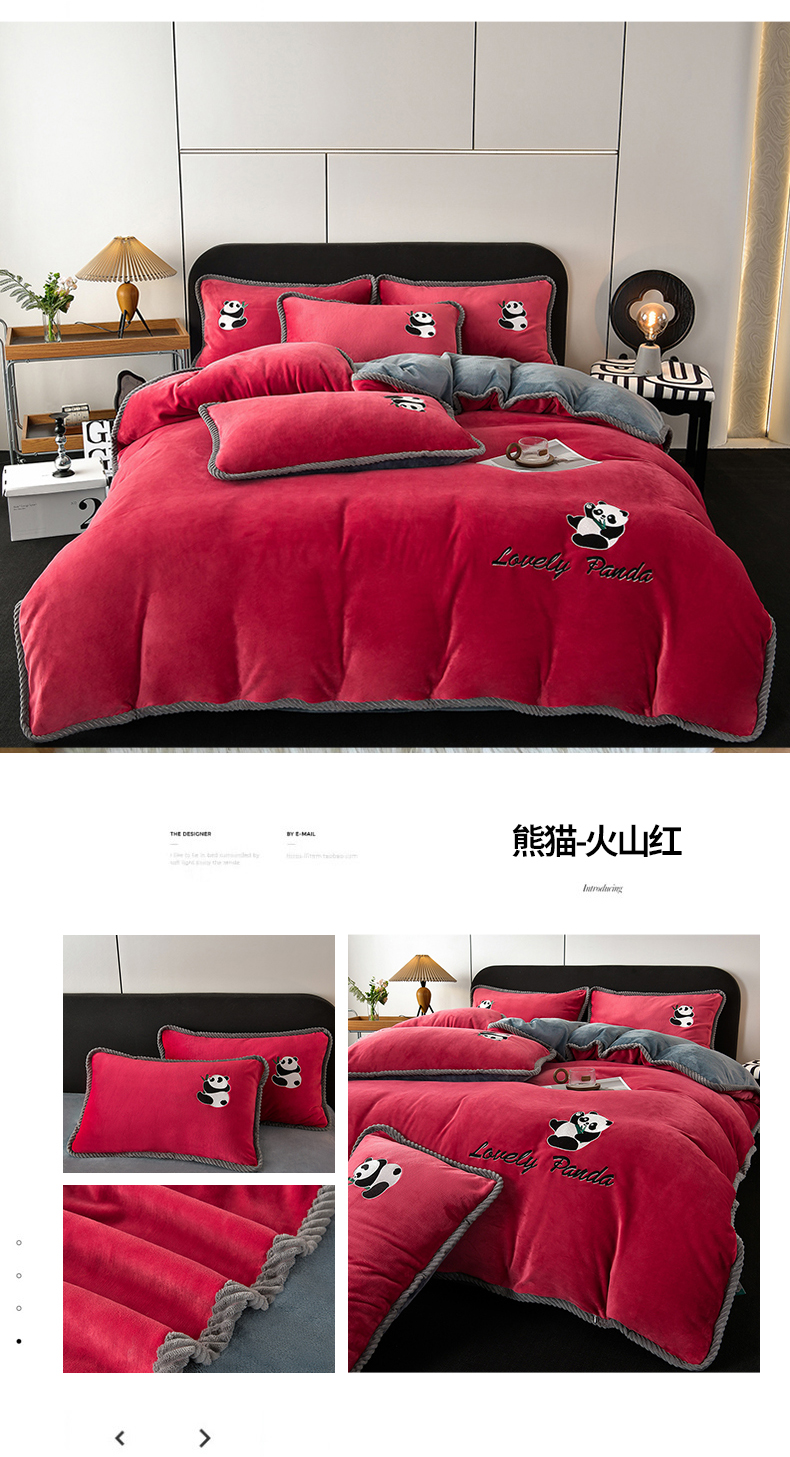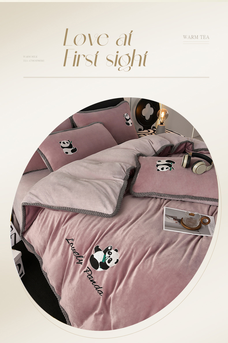 (总)妮恒美 2025新款加厚牛奶绒刺绣四件套-熊猫系列