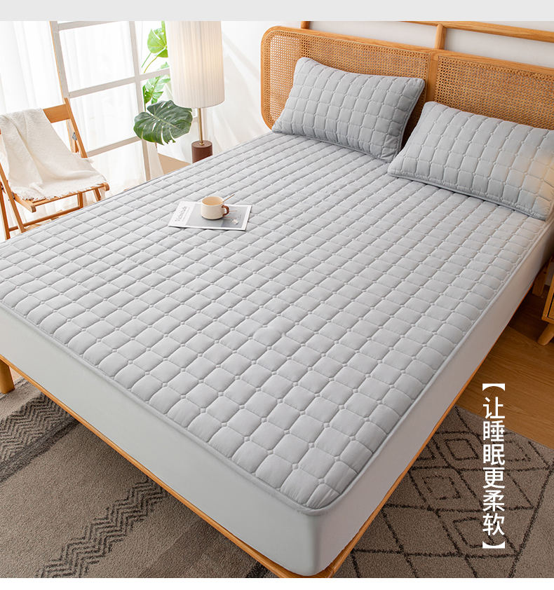 (总)拾小柒 2025年新款牛奶绒防滑床护垫加厚床垫隔脏垫冬季褥子床盖三件套,淡绿,浅粉,浅灰,浅水兰