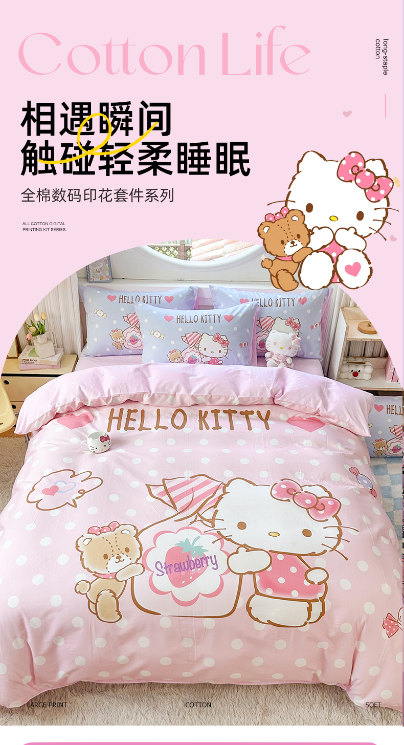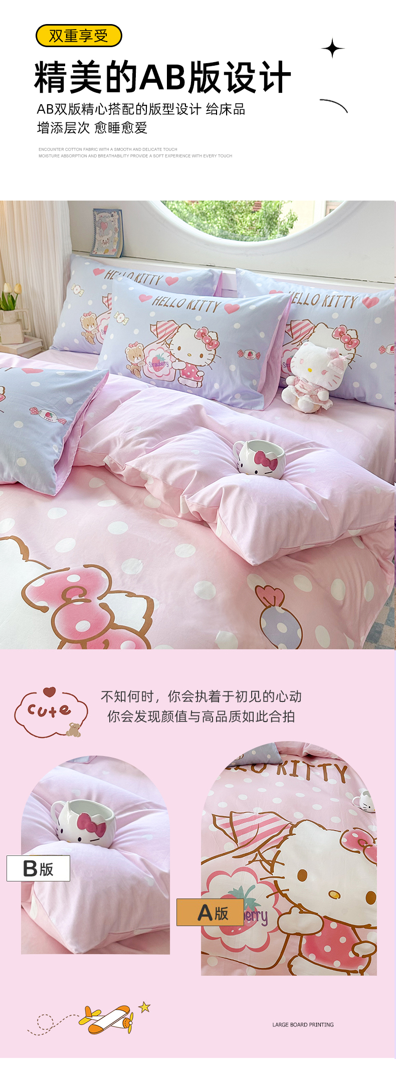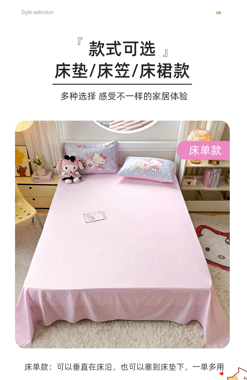 当前位置: 91家纺网 > 商品网购 > 床品套件 > 四件套 > 全棉普通四件套 > 玉元坊 2025新款大版三丽鸥系列全棉纯棉床单纯棉床裙三四件套简约款 宝宝凯蒂猫