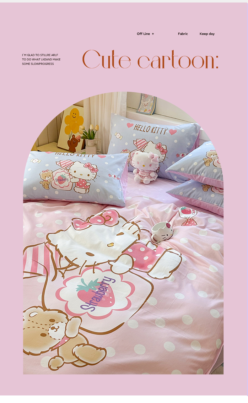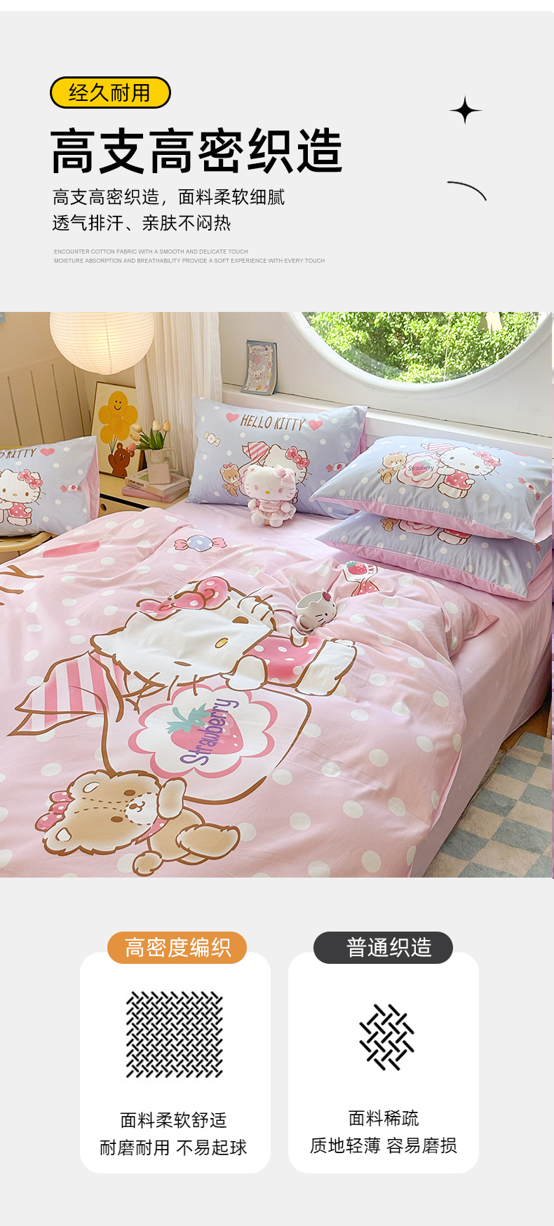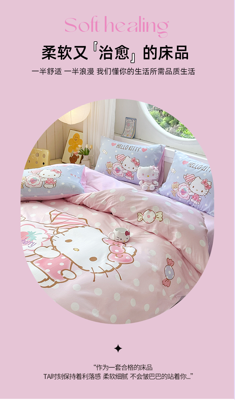 当前位置: 91家纺网 > 商品网购 > 床品套件 > 四件套 > 全棉普通四件套 > 玉元坊 2025新款大版三丽鸥系列全棉纯棉床单纯棉床裙三四件套简约款 宝宝凯蒂猫