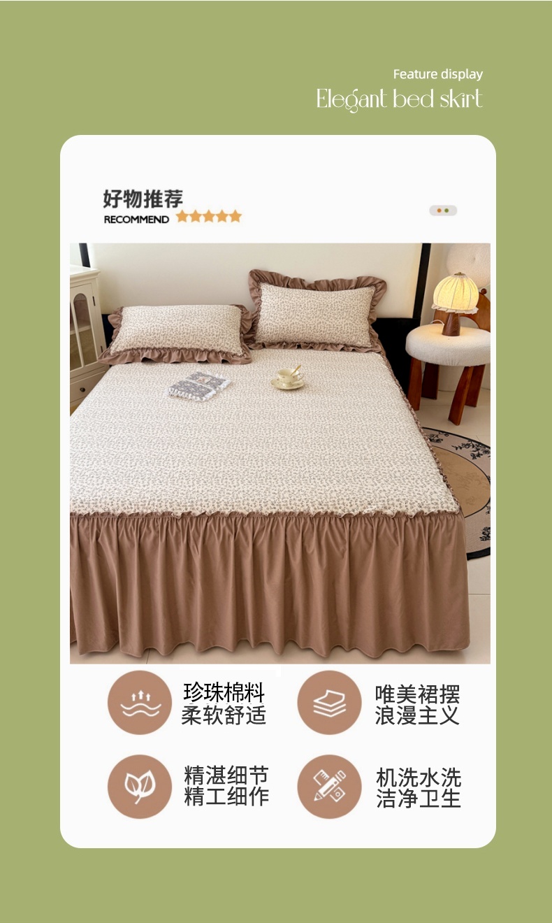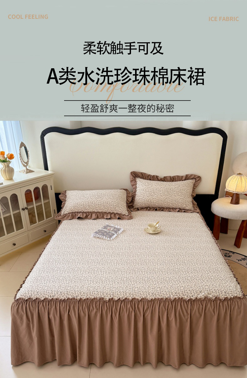 商品名称:圣比熊 2025新款水洗珍珠棉单件床裙双层纱床垫保护罩三件套 柏林梦境-咖