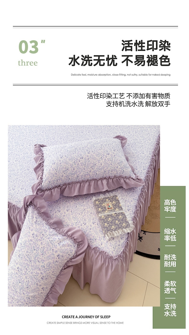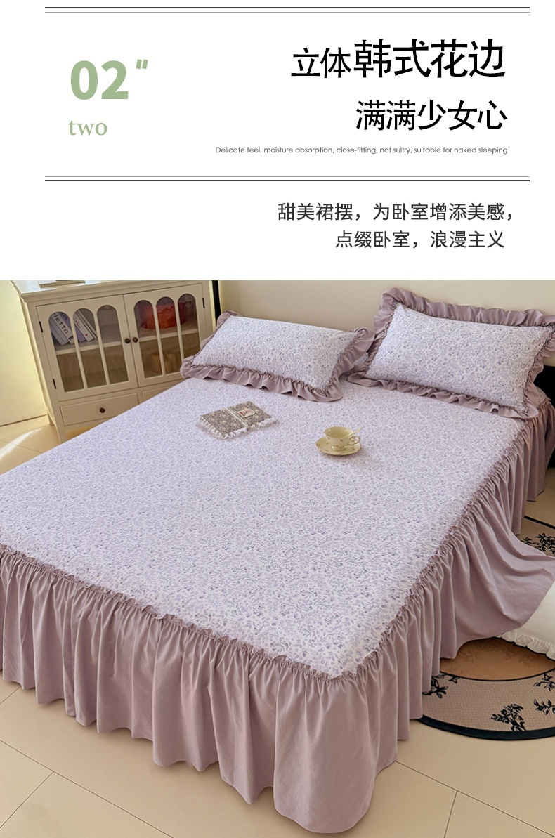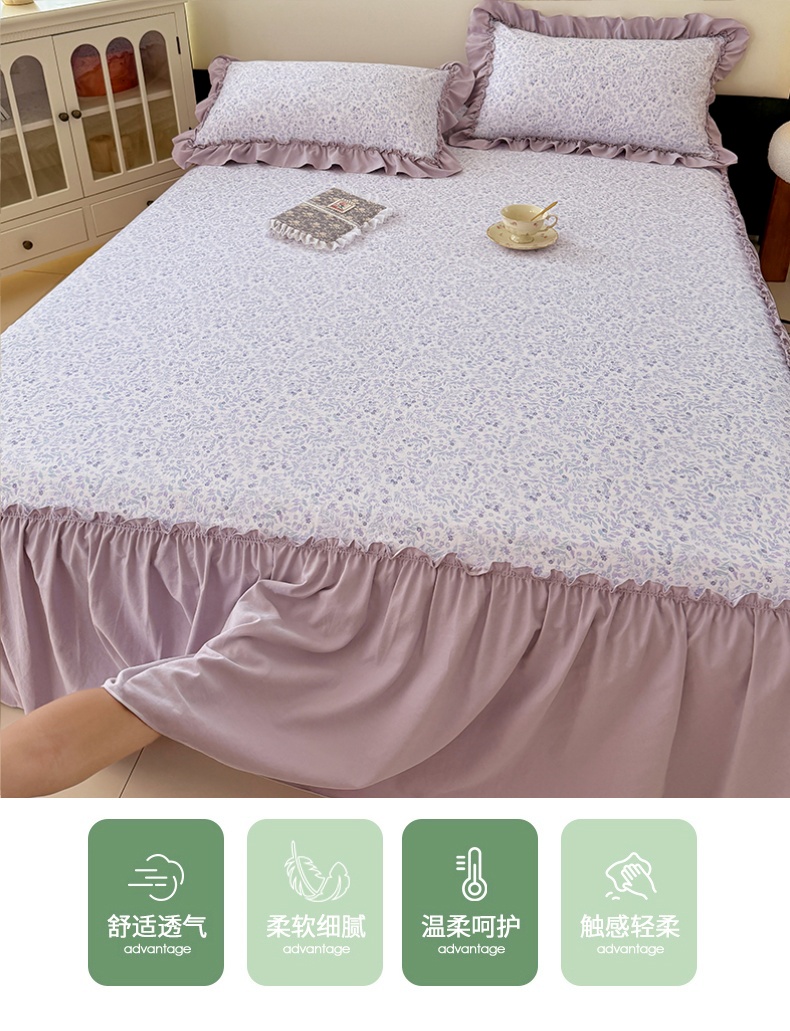 商品名称:梦舒羽 2025新款水洗珍珠棉单件床裙双层纱床垫保护罩三件套 浅影摇曳-紫