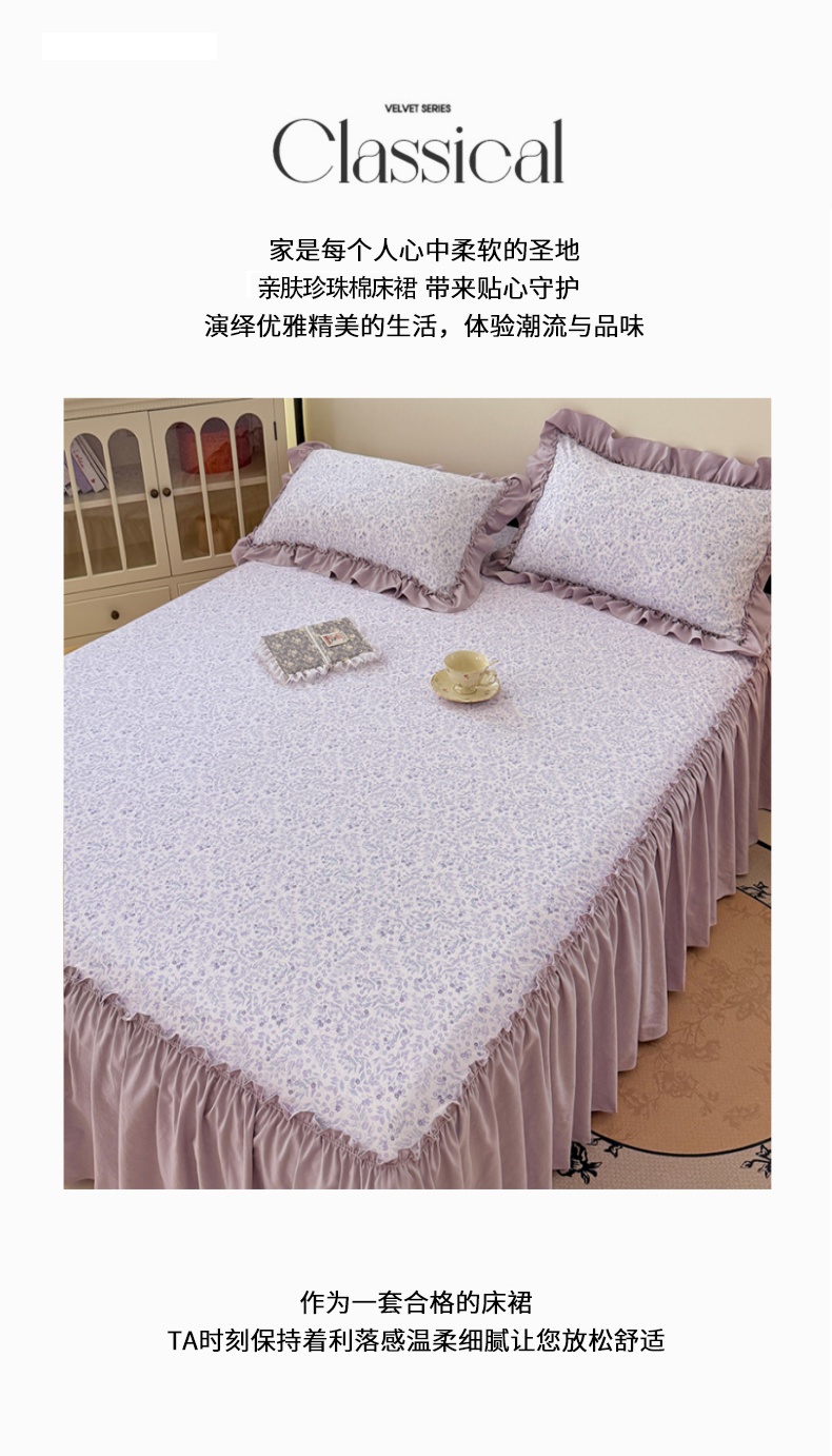 (总)梦舒羽 2025新款水洗珍珠棉单件床裙双层纱床垫保护罩三件套,玫瑰之约,柏林梦境-咖,花未眠-紫,花知晓,蓝相思,墨染芳华,宁静花园,怦然心动,浅影摇曳-紫,樱桃季,云裳花谷,紫倾心,组合图仅供展示