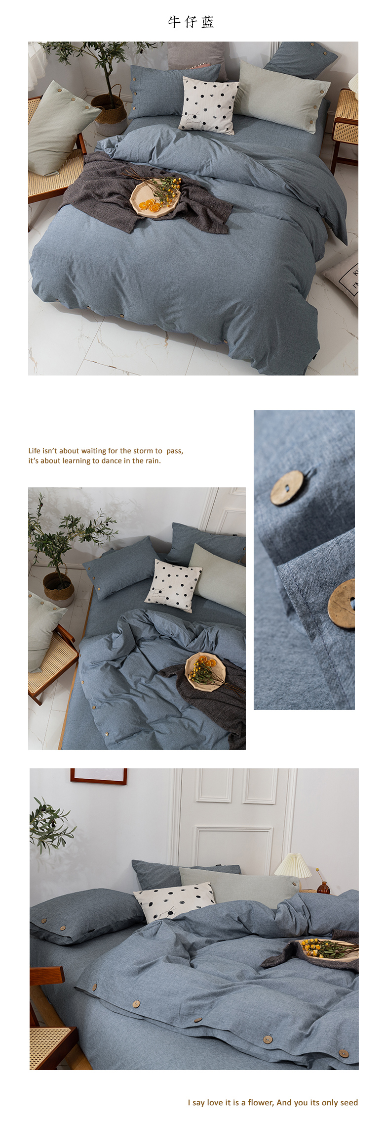 贝尔 PELLHOME 简约复古风美日式纯素色纽扣棉麻透气舒适亚麻北欧单被套(可抖音代发) 灰玫瑰