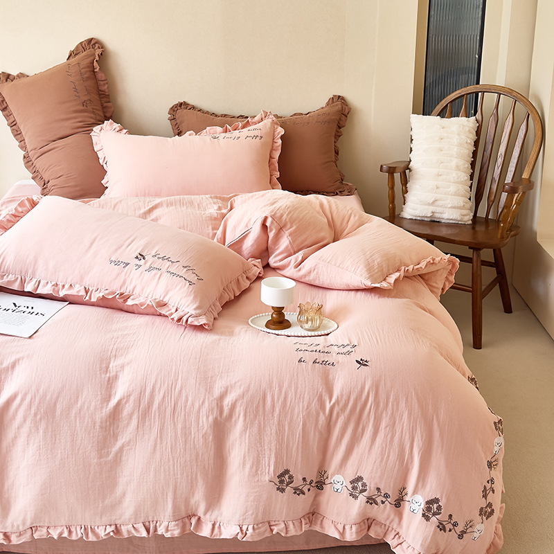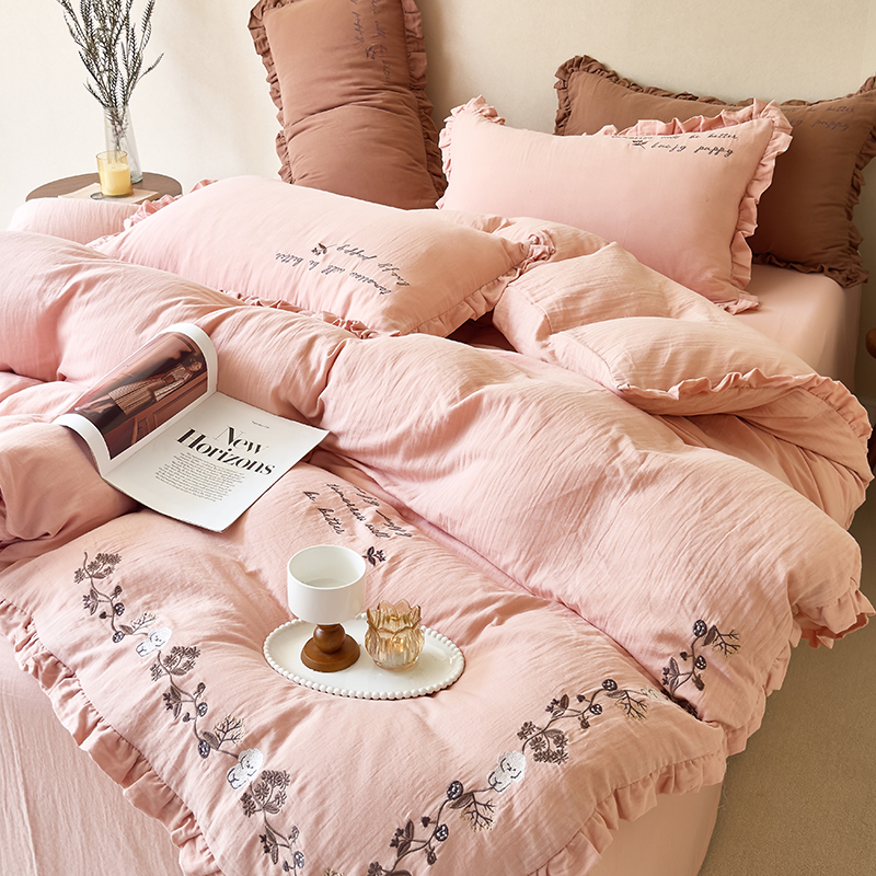 (总)贝尔 2025新款牛奶绒刺绣四件套-花语系列,花语-豆沙,花语-粉色,花语-高级灰,花语-蓝色,花语-浅绿,花语-玉色