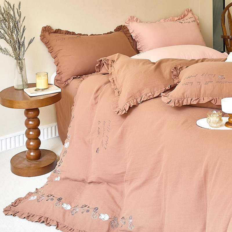 贝尔 2025新款纯色高克重牛奶绒刺绣四件套-羽魅 羽魅-豆沙,羽魅-豆沙