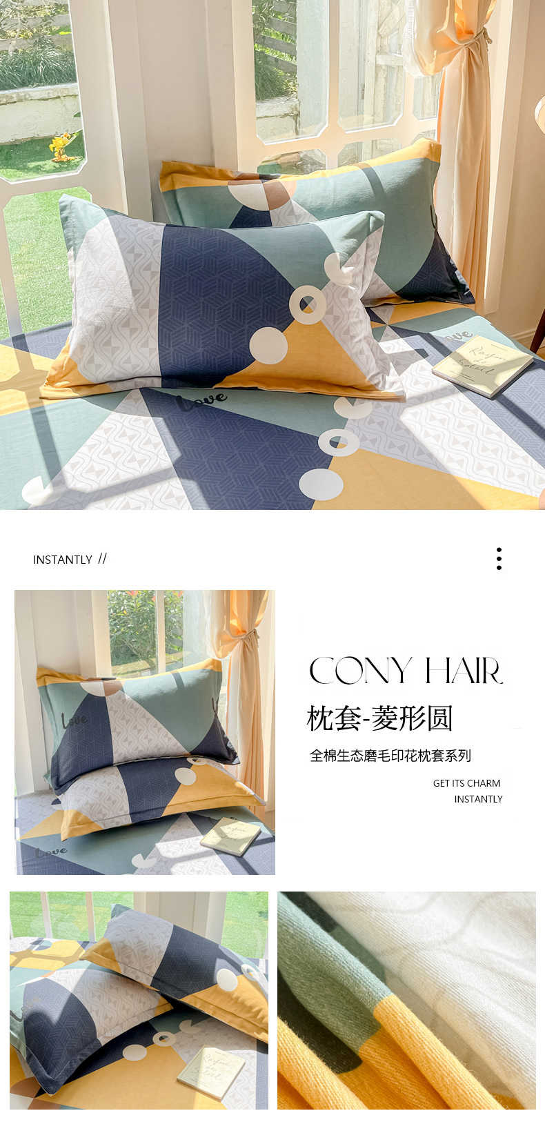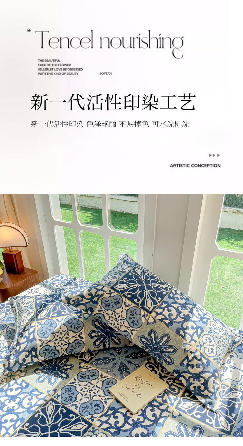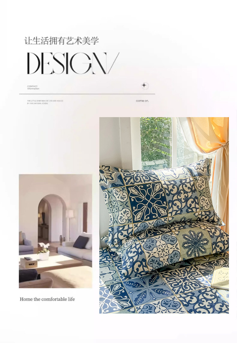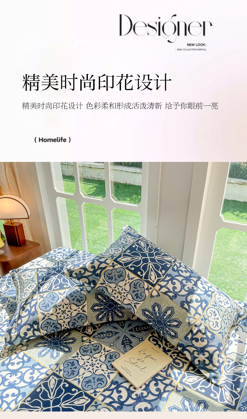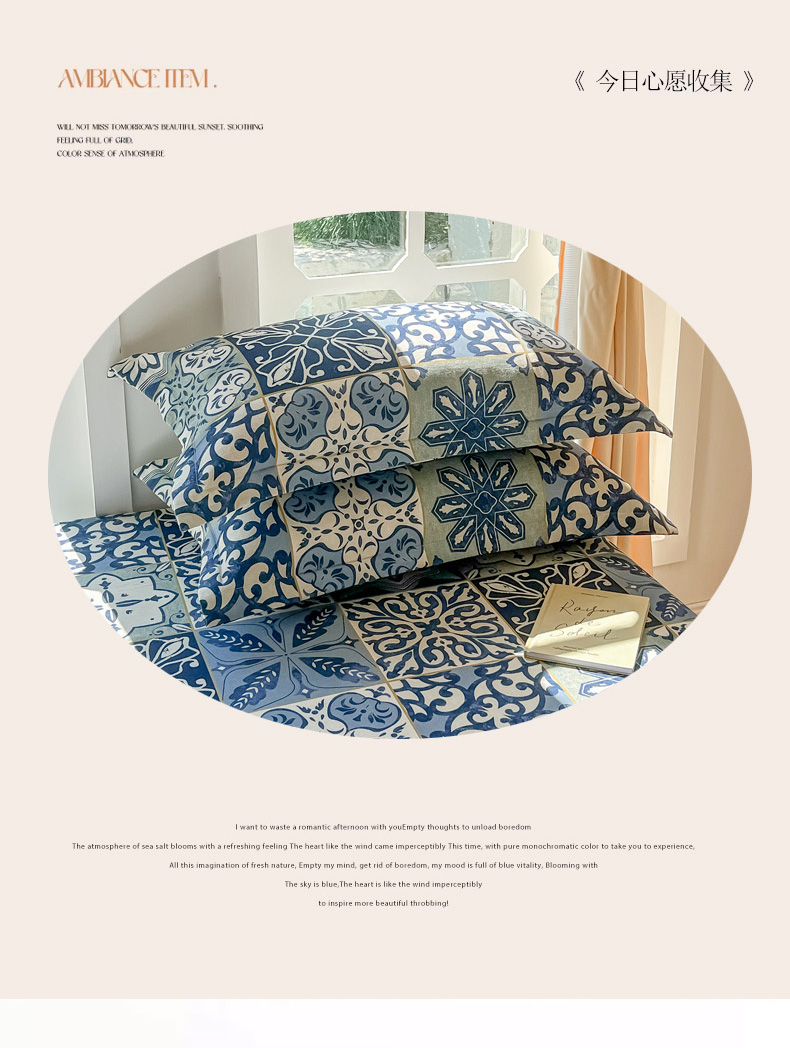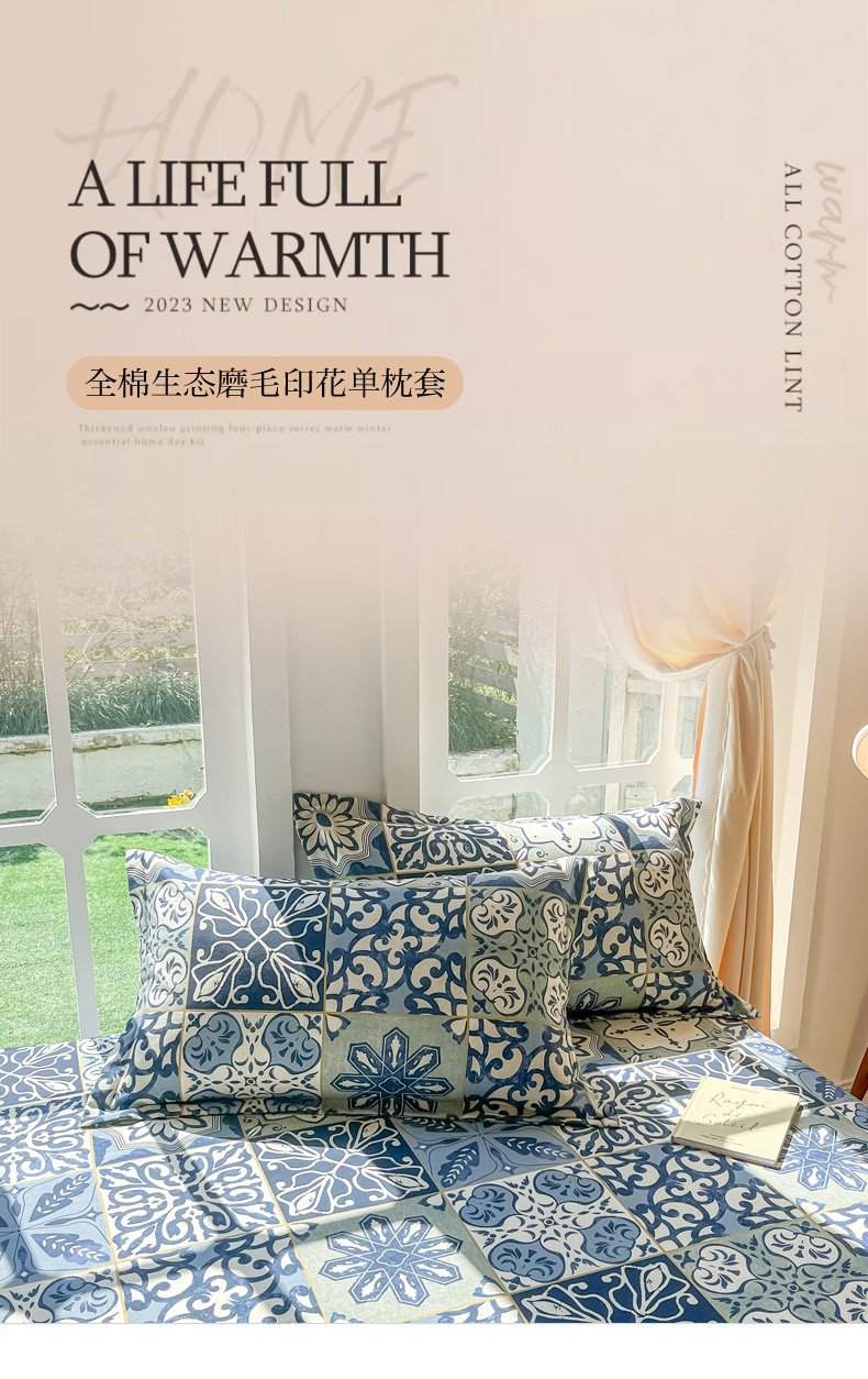 商品名称:眠博士 2025新款全棉混纺生态磨毛印花单枕套 磨毛枕套-浪漫蓝布