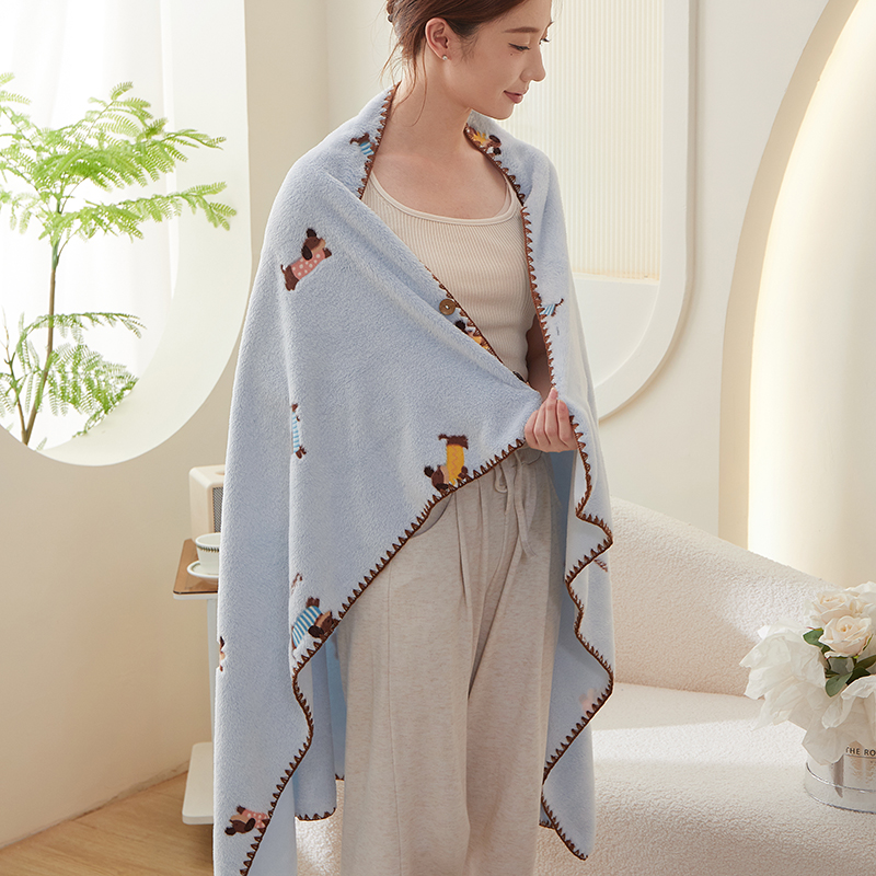 商品名称:楼兰公主 2025秋冬新款云朵绒披肩毯毛毯毯子多功能盖毯 腊肠狗