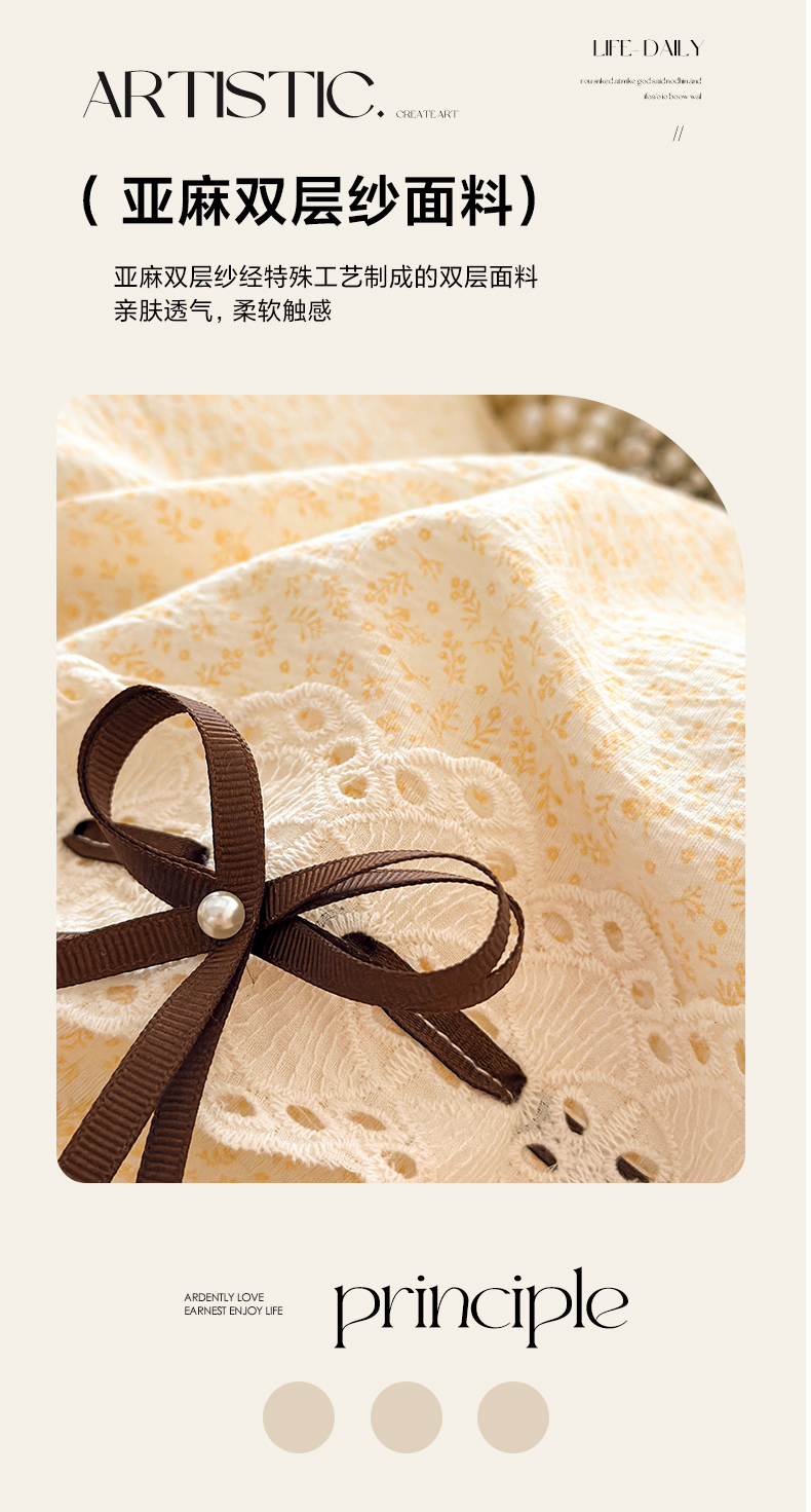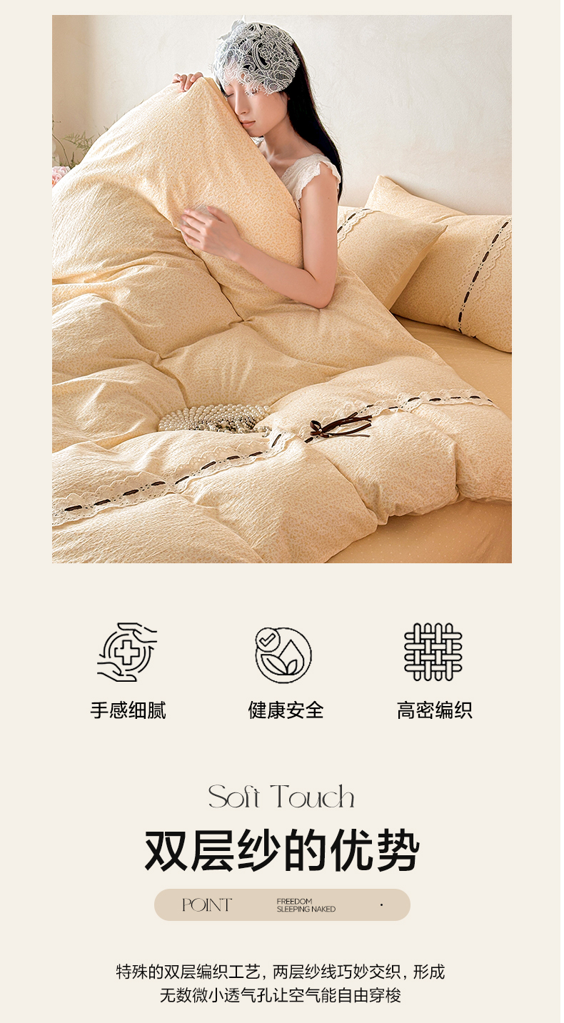商品名称:遇见家居生活馆 2025新款亚麻双层纱四件套-叶知秋(小号108 标准128,加大138) 叶知秋-黄色