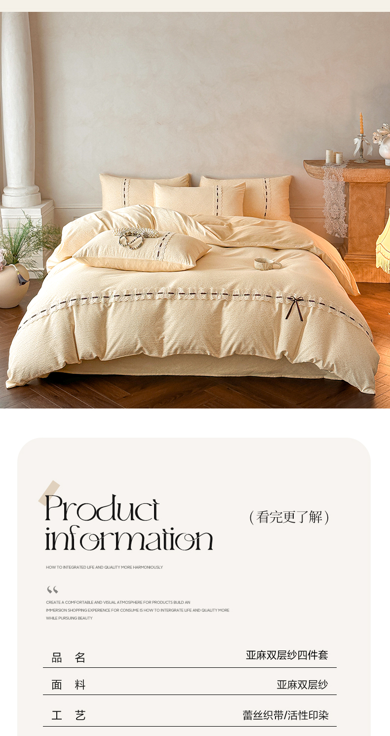 (总)遇见家居生活馆 2025新款亚麻双层纱印花四件套-往事,往事-枫叶红,往事-复古咖,往事-奶油黄,往事-浅灰色,往事-深灰色