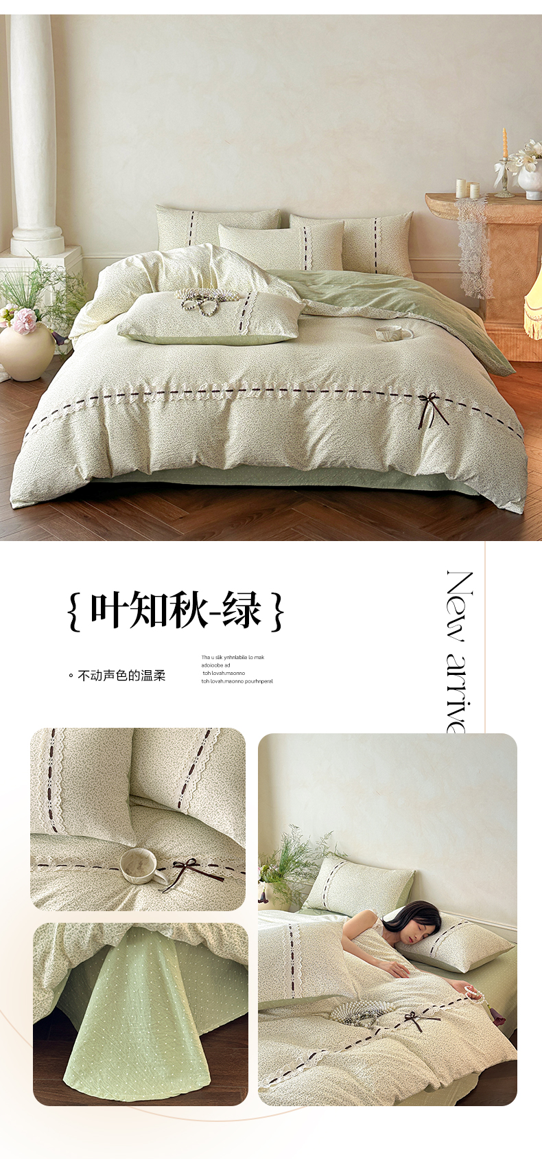 (总)2025新款小清新全棉纯棉四件套-若溪,麦田绿,茉莉奶白,霞光紫,杏花粉,雪山粉