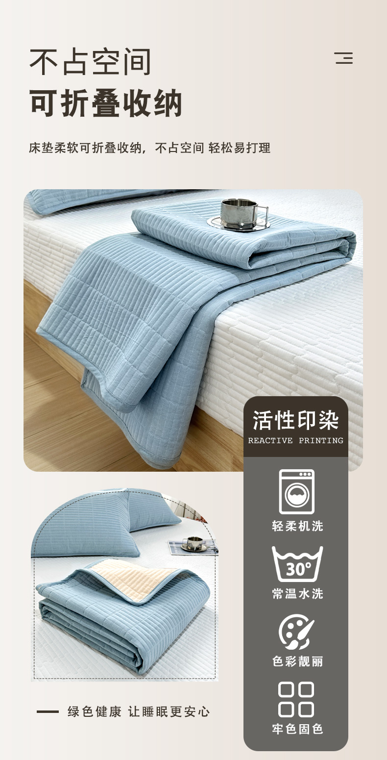 (总)拾小柒 2025年新款牛奶绒防滑床护垫加厚床垫隔脏垫冬季褥子床盖三件套,淡绿,浅粉,浅灰,浅水兰