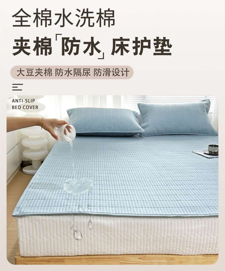 (总)拾小柒 2025新款A类全棉水洗棉床盖防水隔尿床护垫防滑隔脏姨妈垫,粉玉色,鹅黄色,姜黄色,焦糖色,卡其色,牛仔蓝,浅蓝色,浅绿色,青灰色,组合图