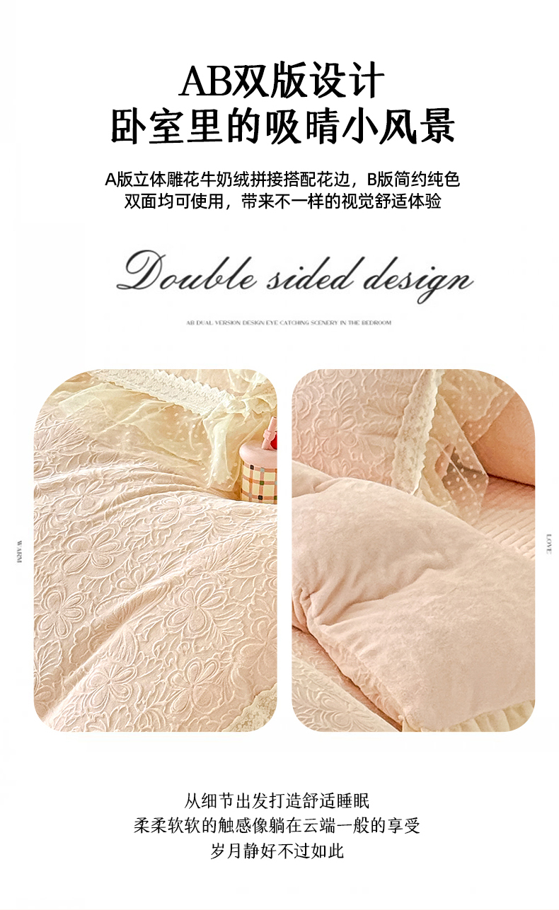 当前位置: 91家纺网 > 商品网购 > 床品套件 > 四件套 > 牛奶绒四件套 > 锦格家纺 2025新款A类高克重雕花牛奶绒花边四件套 幻梦-黄