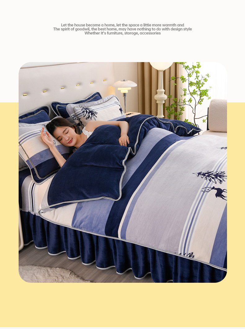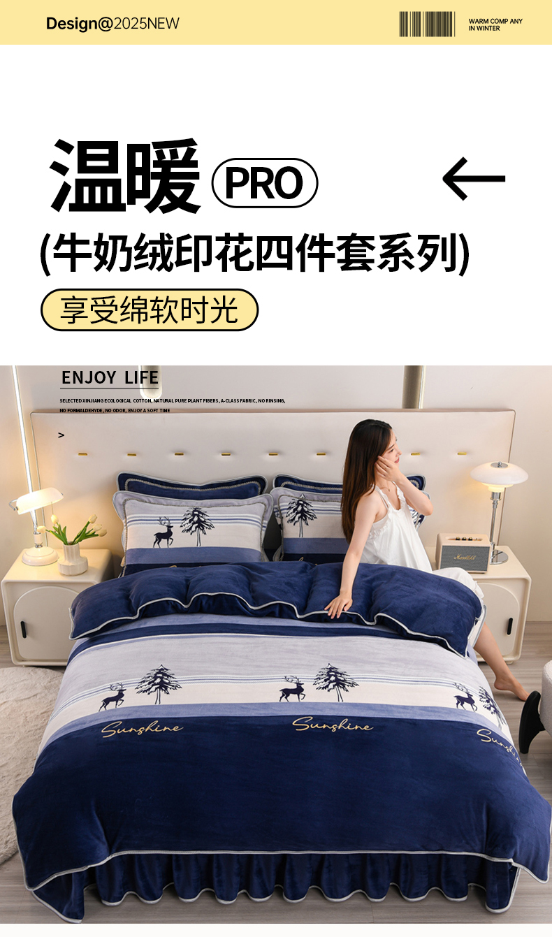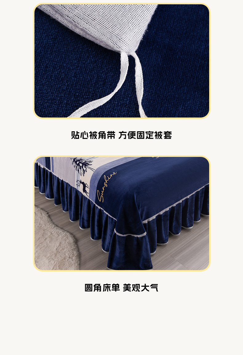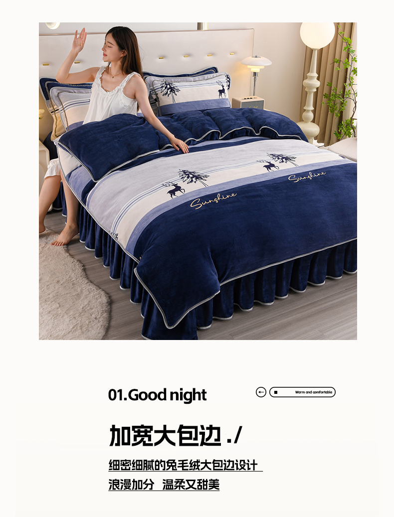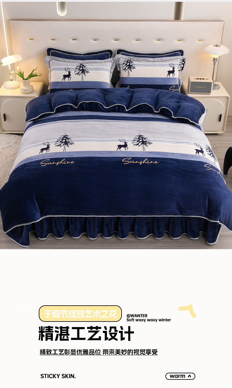 当前位置: 91家纺网 > 商品网购 > 床品套件 > 四件套 > 牛奶绒四件套 > 晚静 2025新款7斤牛奶绒四件套金貂法莱绒床裙款保暖绒三件套 小鹿