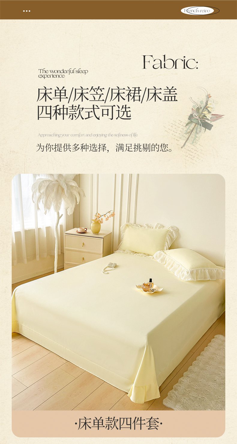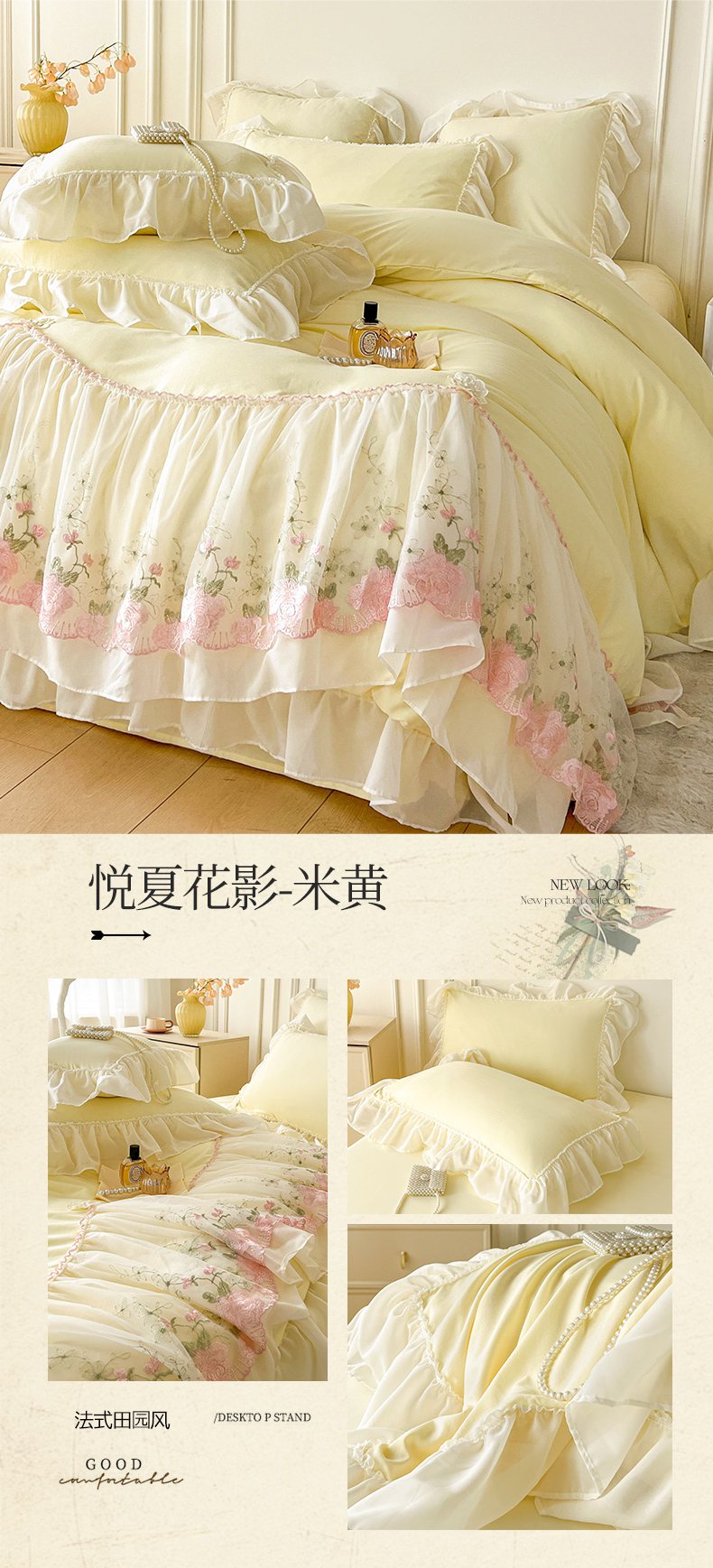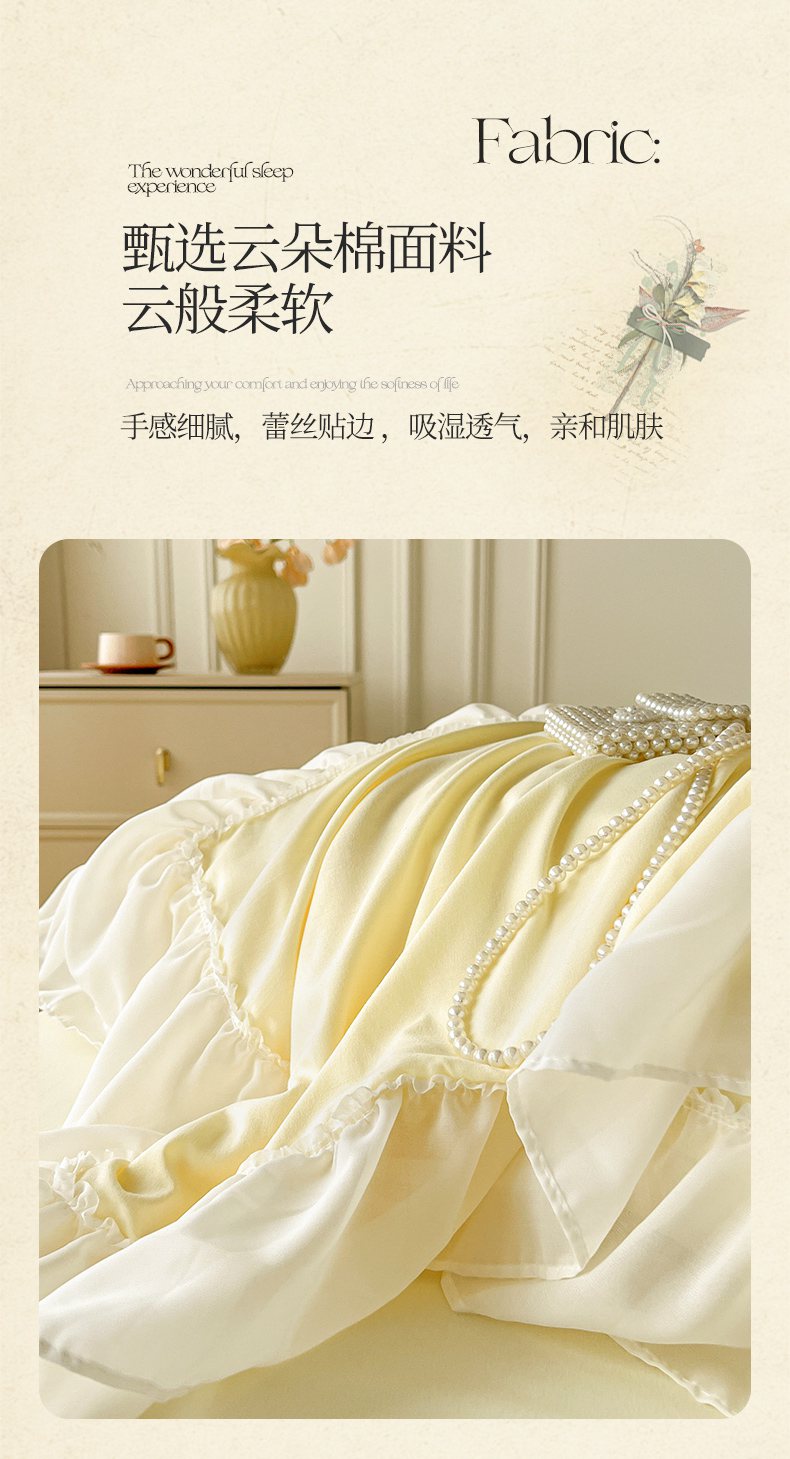 当前位置: 91家纺网 > 商品网购 > 床品套件 > 四件套 > 其它四件套 > 鼎丰家纺 2025新款蕾丝雪纺花边四件套-悦夏花影系列 悦夏花影-米黄