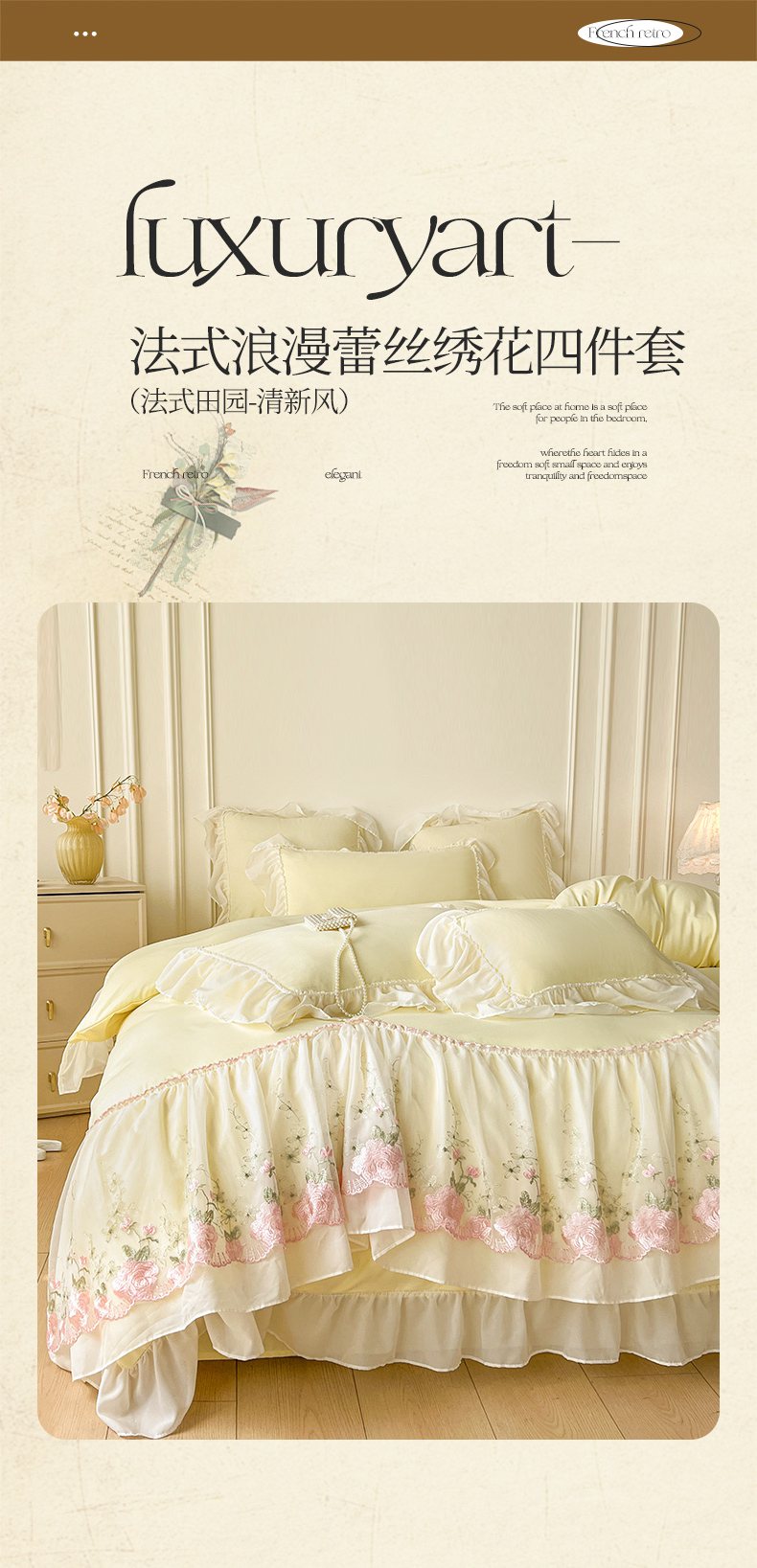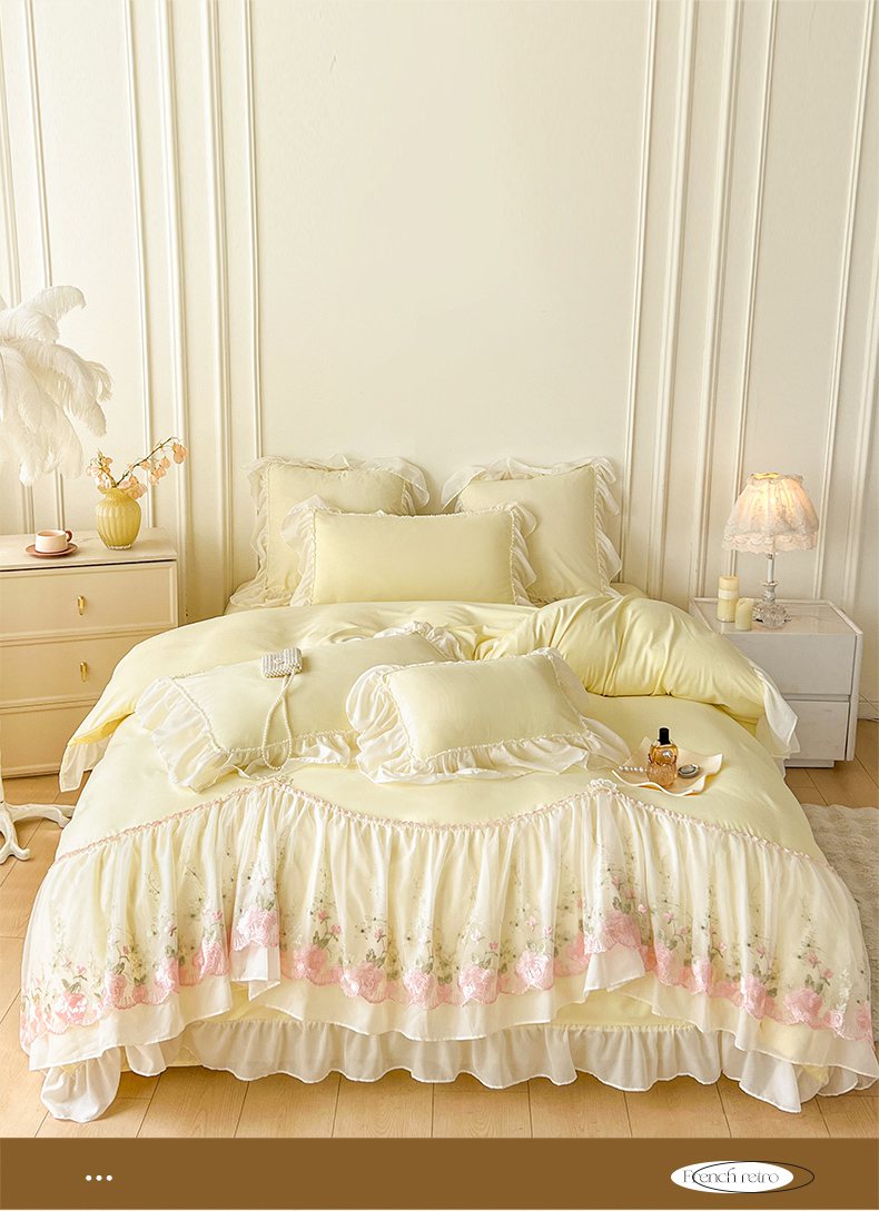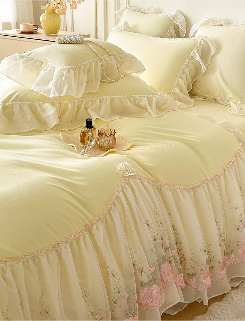 当前位置: 91家纺网 > 商品网购 > 床品套件 > 四件套 > 其它四件套 > 鼎丰家纺 2025新款蕾丝雪纺花边四件套-悦夏花影系列 悦夏花影-米黄