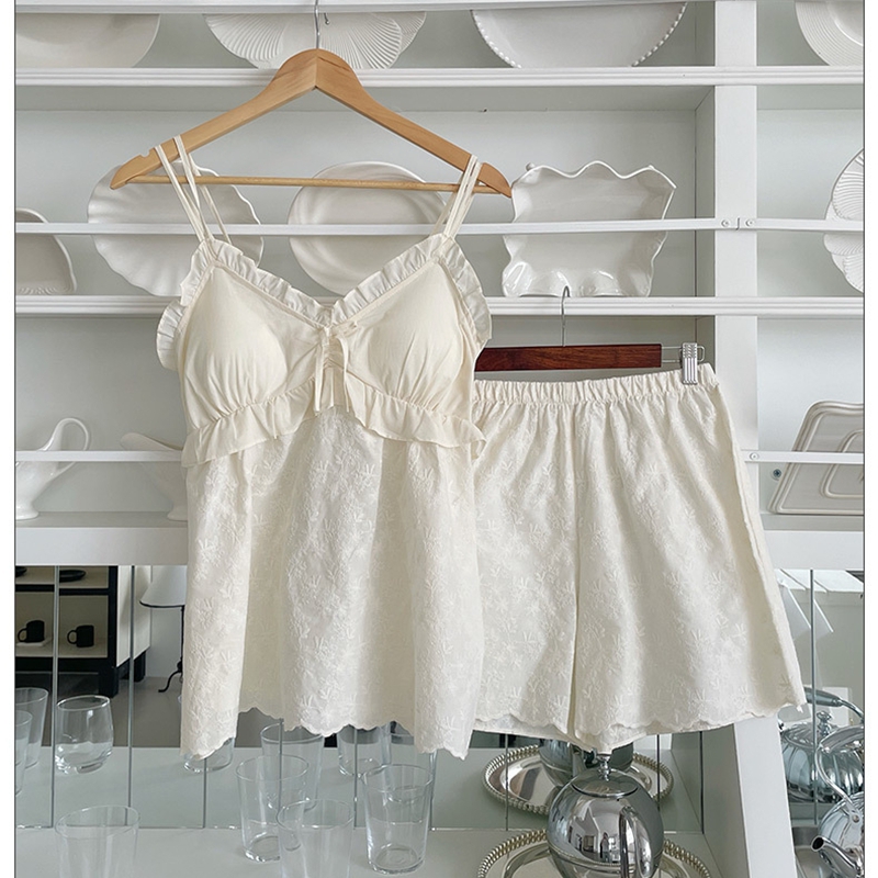 当前位置: 91家纺网 > 商品网购 > 居家日用 > 睡衣/家居服套装 > (总)妍景家居生活馆 2025新款韩系花边蝴蝶结吊带套装