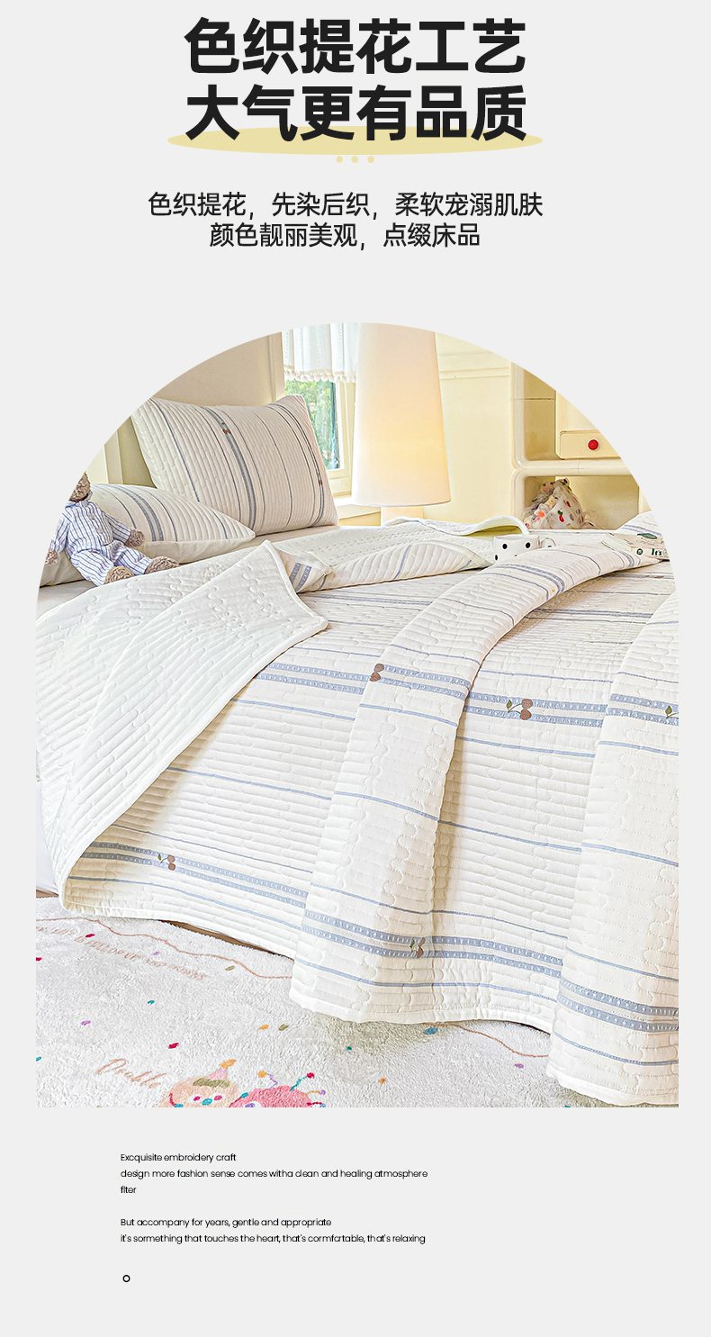 灰鲸 2025新款全棉色织提花床盖系列 樱诺-蓝