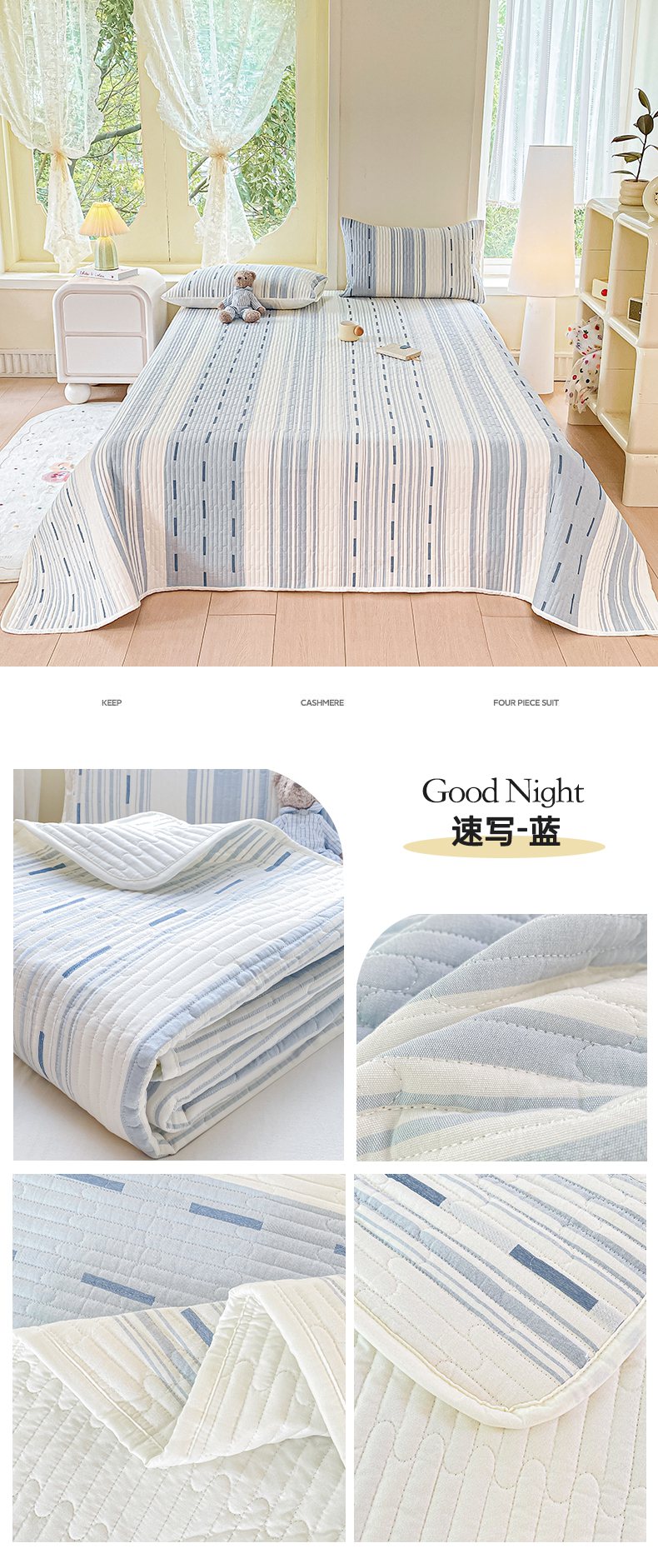当前位置: 91家纺网 > 商品网购 > 床上用品 > 床盖 > 灰鲸 2025新款全棉色织提花床盖系列 樱诺-蓝