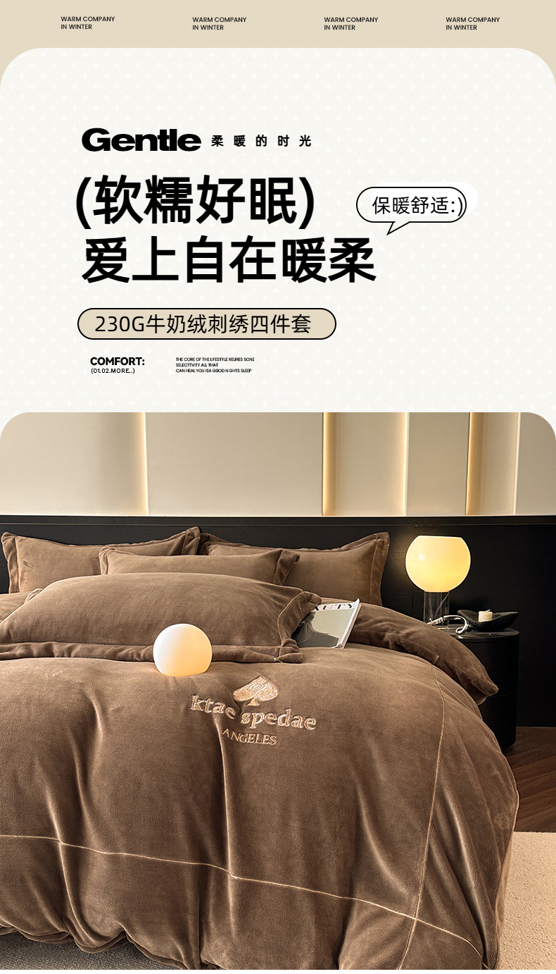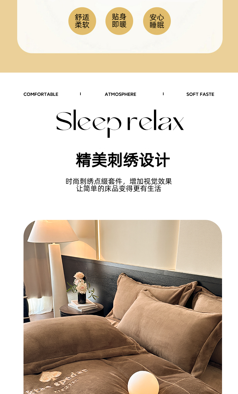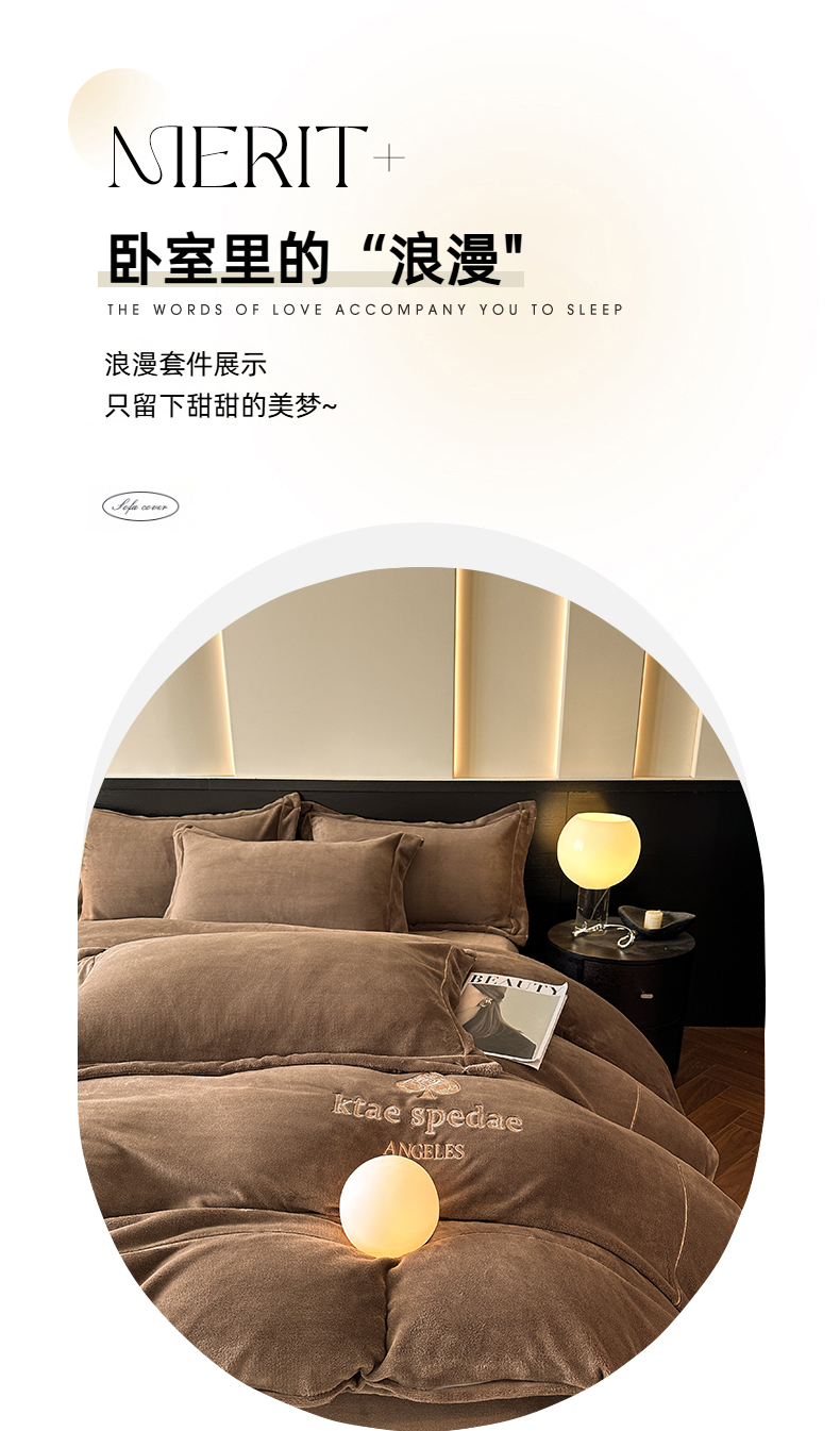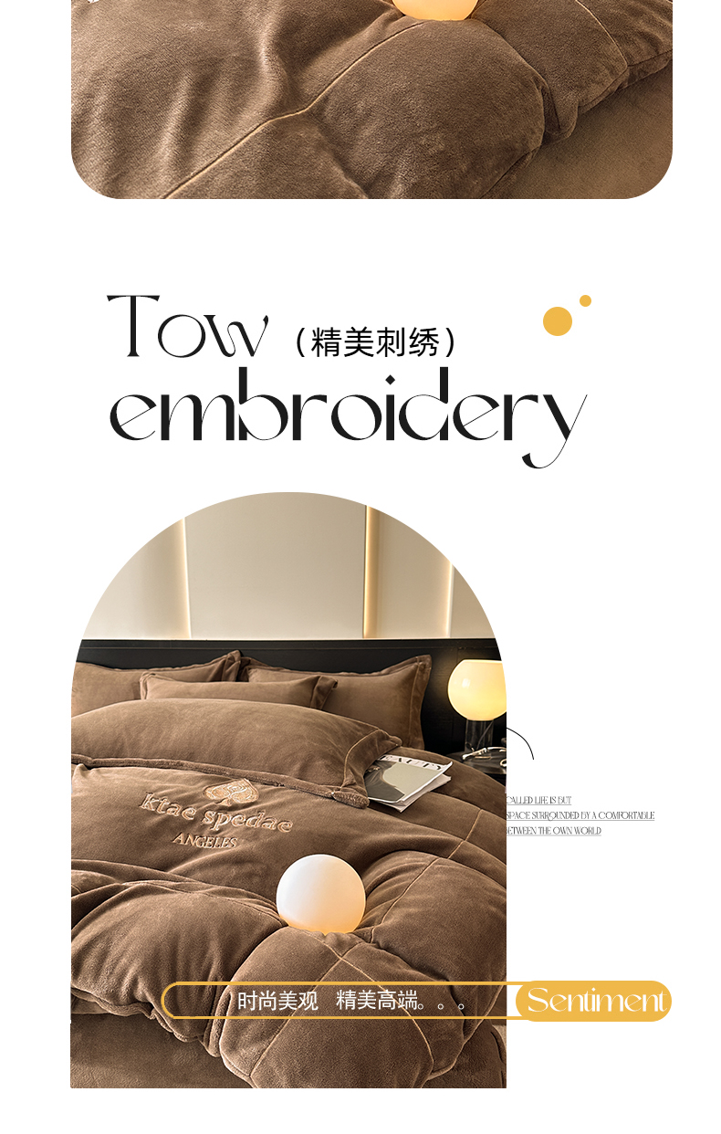 商品名称:狂想家 2025新款刺绣牛奶绒四件套-安琪儿 安琪儿-轻奢咖