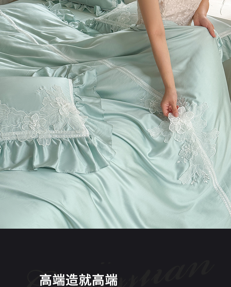 (总)美娘阁 2025新款长绒棉全棉提花居家款四件套-芙莉亚,芙莉亚(薄荷绿),芙莉亚(仙粉)