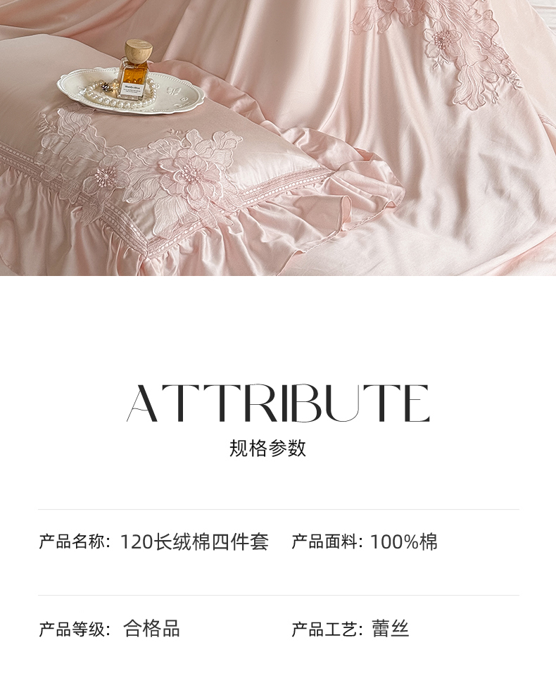 (总)美娘阁 2025新款长绒棉全棉提花居家款四件套-安露丝,安露丝(粉),安露丝(绿)