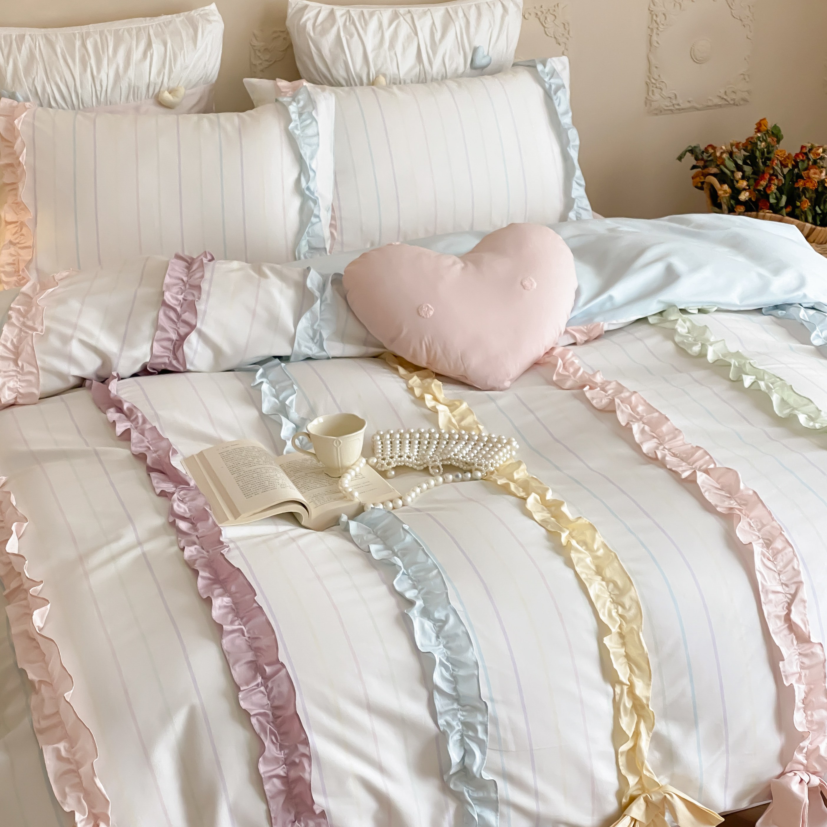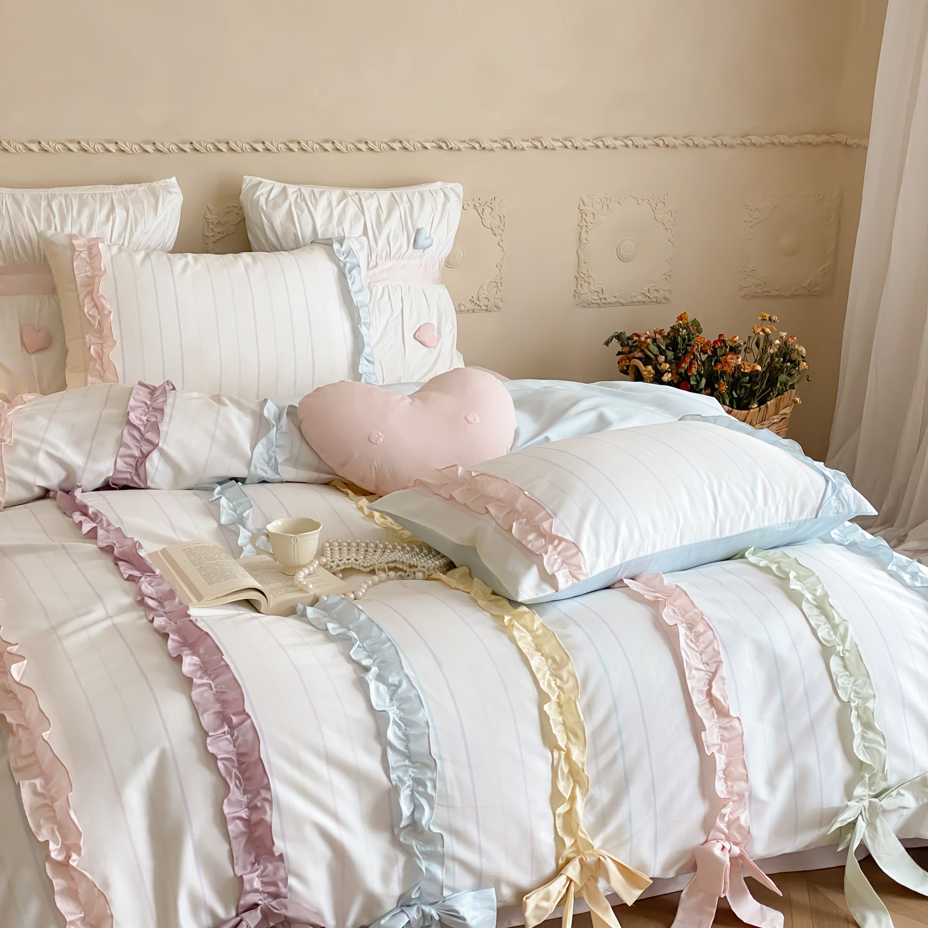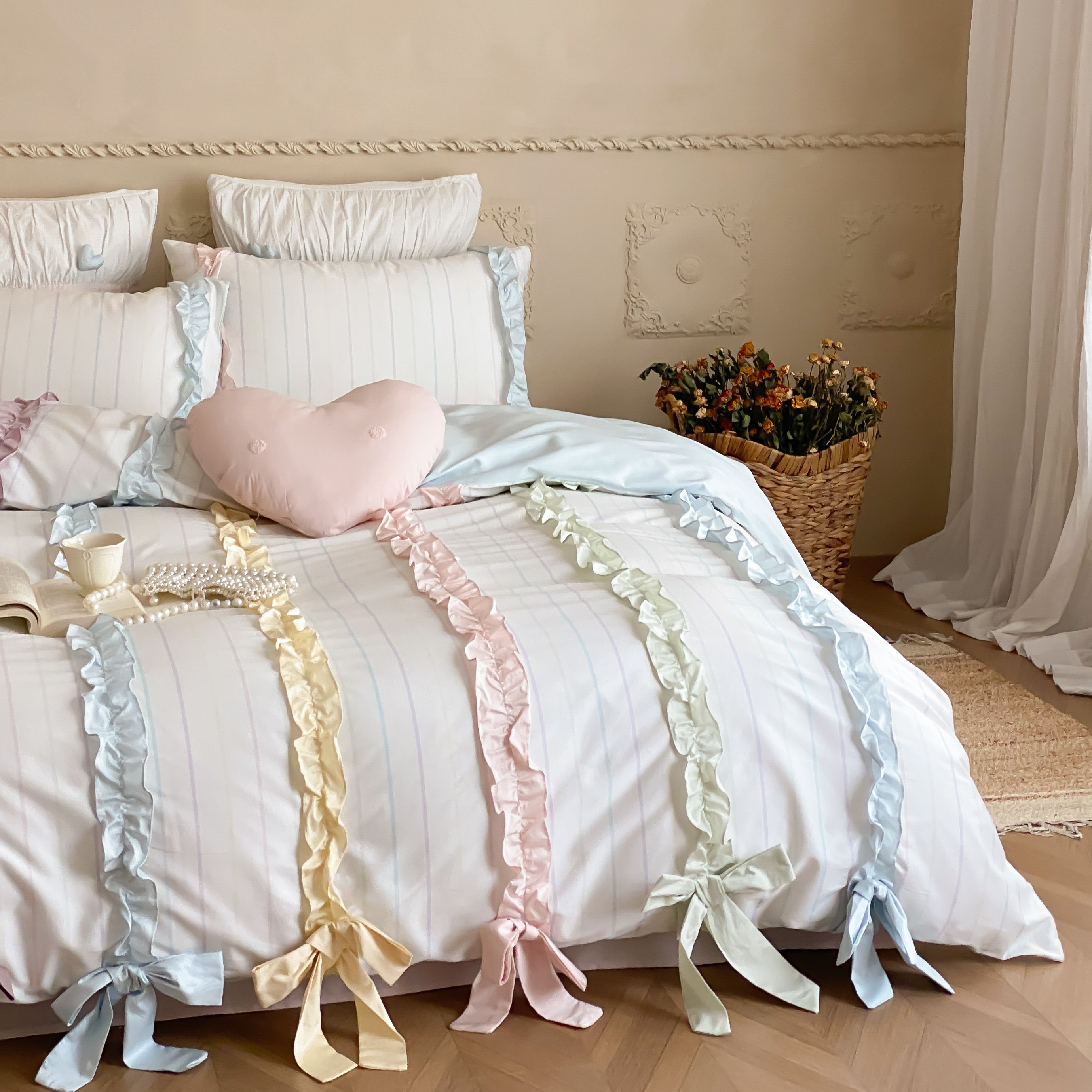 (总)星野 2025新款公主风双股澳棉全棉花边蝴蝶结四件套奶油缎带