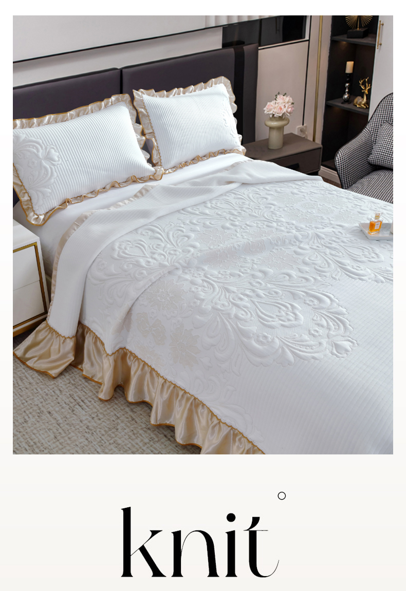 商品名称:典曼家纺 2025新款北欧风针织棉床盖三件套床盖 曲边格调
