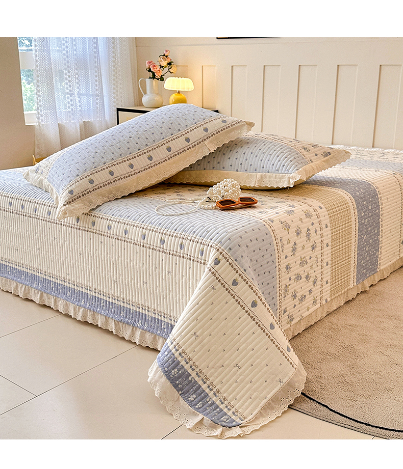 (总)岚吉家纺 2025新款全棉绗缝棉花床盖花边款三件套四件套,缤纷樱桃,草莓格子,花边兔,黄苏条,蓝美人,落落晨光,萌萌狮,蘑菇狗,秋日玫瑰,兔菲菲,向晚,小黑点点(米),游花间