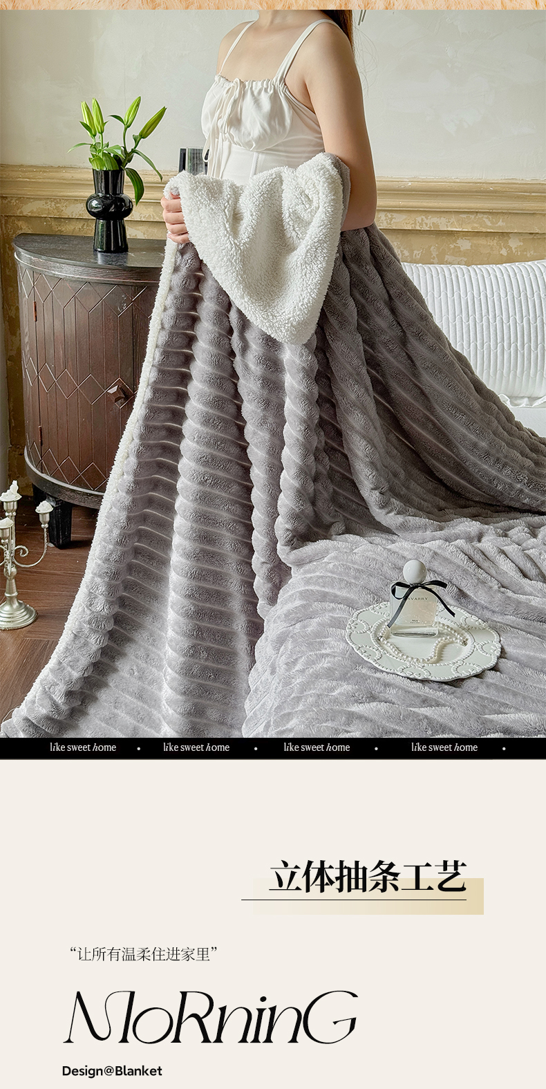 当前位置: 91家纺网 > 商品网购 > 毛毯休闲毯绒毯 > 毛毯 > 艾咪-Amy ntmy 2025新款立体抽条仿兔绒羊羔绒双层毯子 双层毯-柔云灰