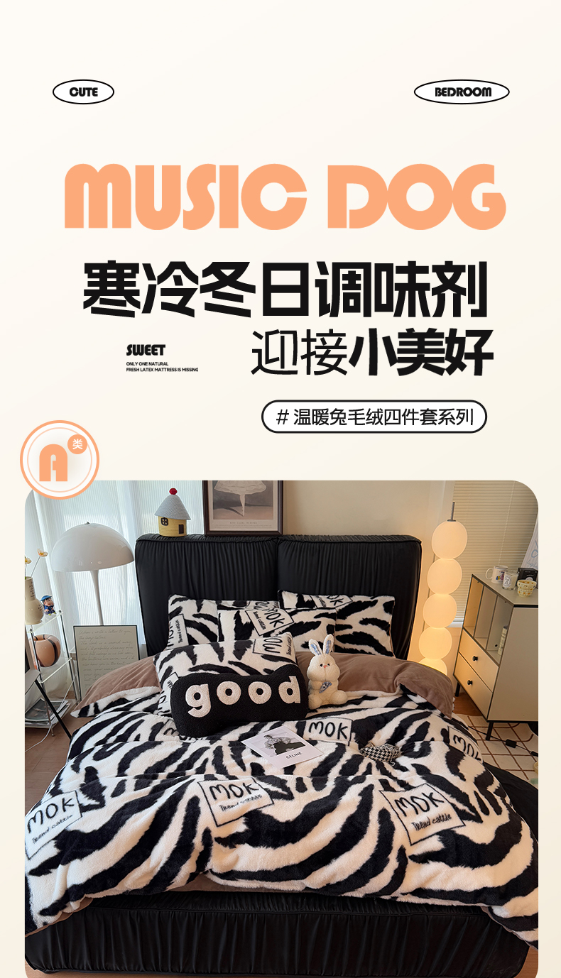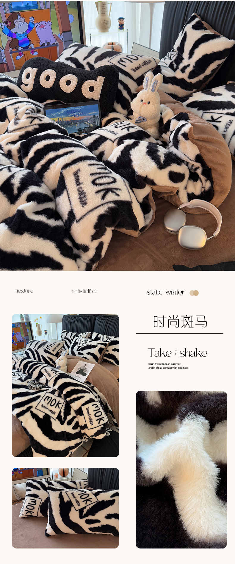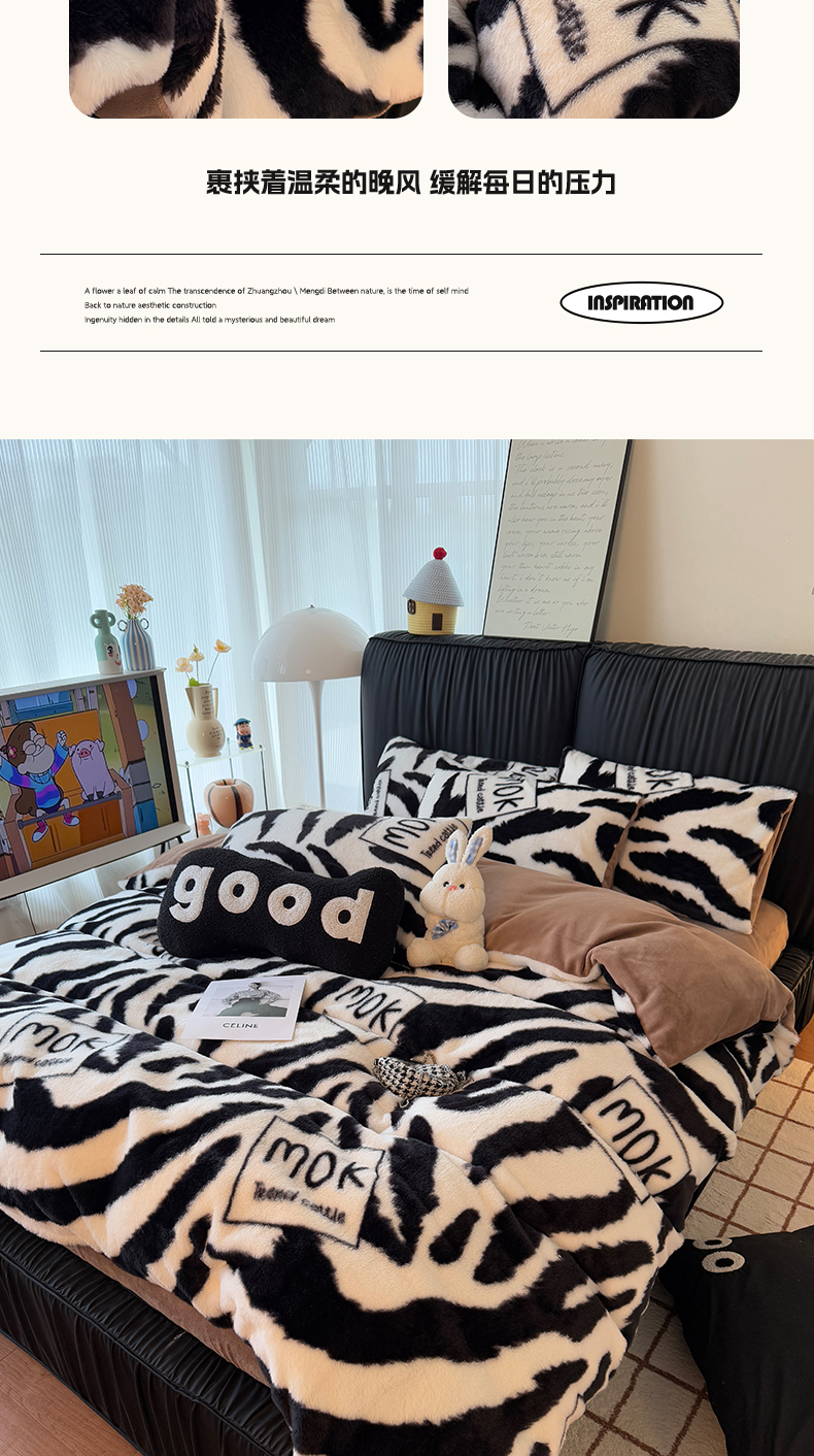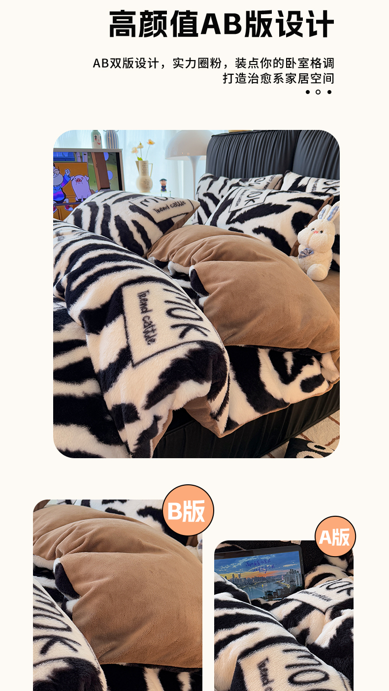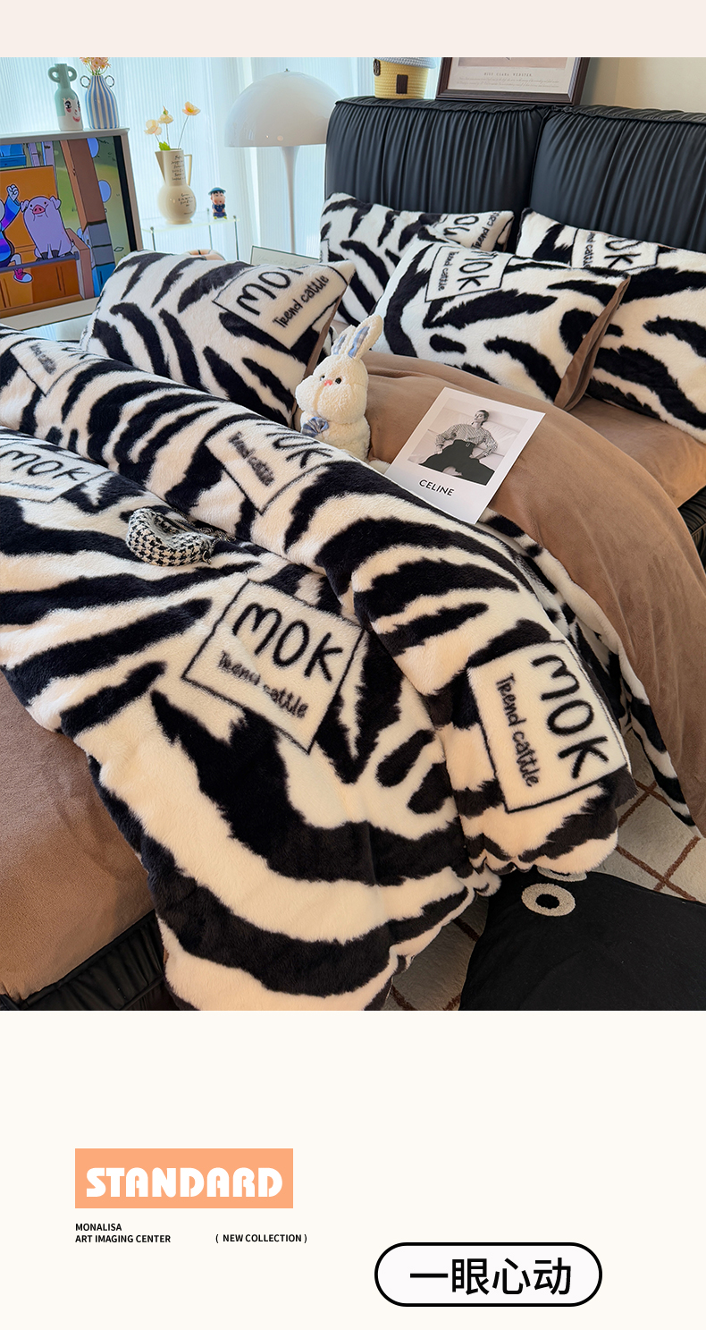 商品名称:HL原创 2025新款兔毛绒单品被套单件被套 时尚斑马