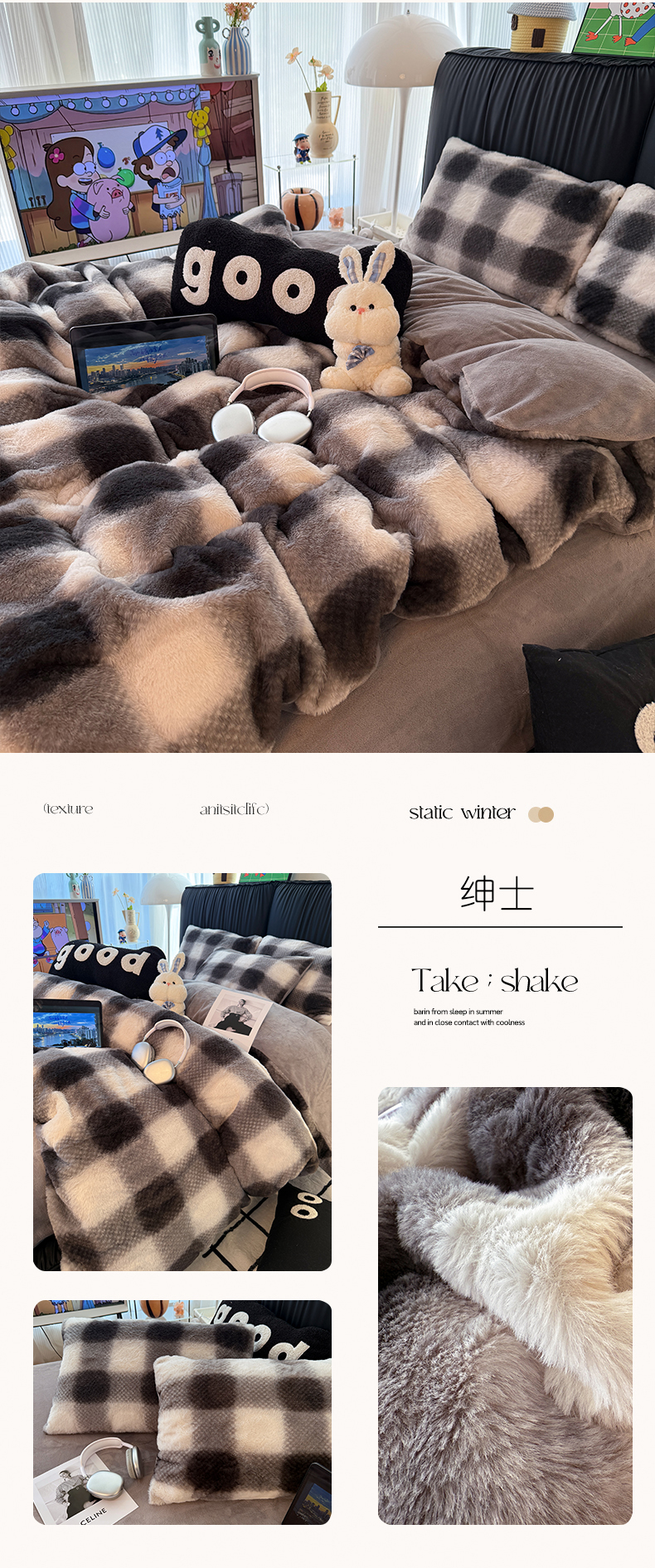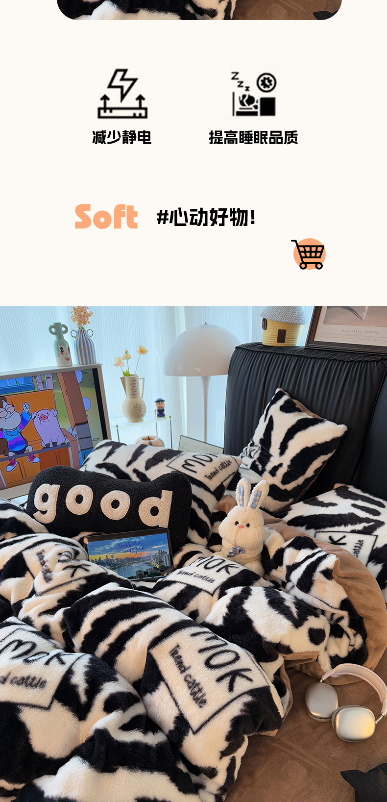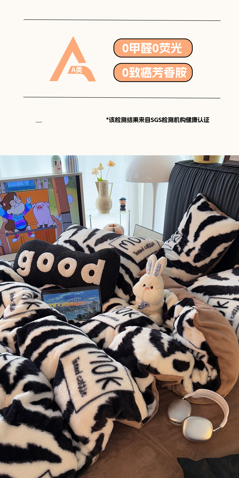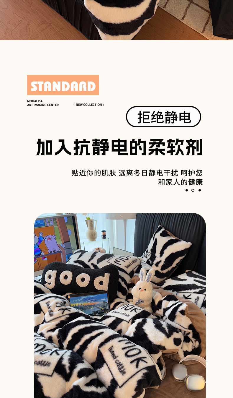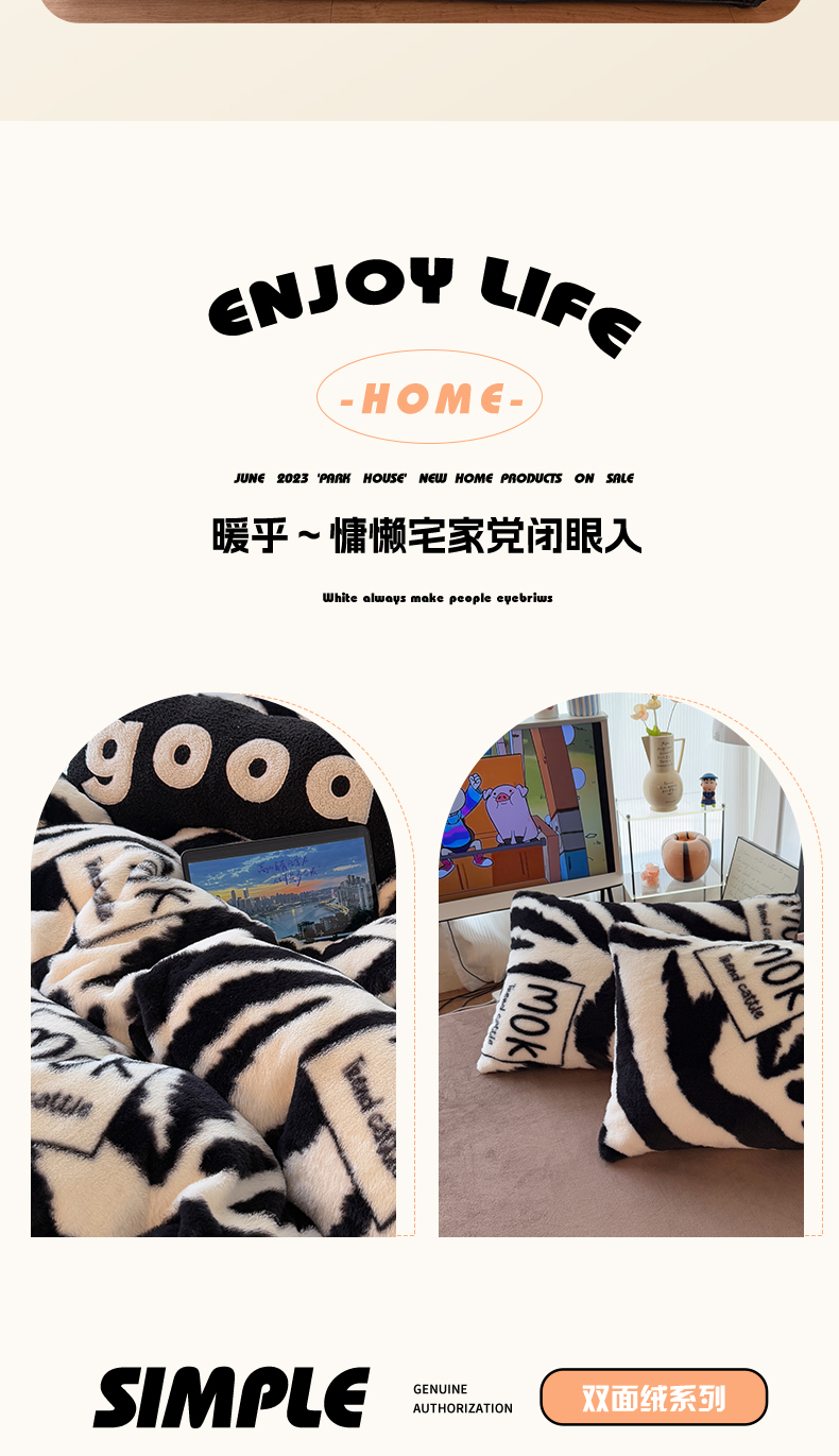 商品名称:HL原创 2025新款兔毛绒单品被套单件被套 时尚斑马