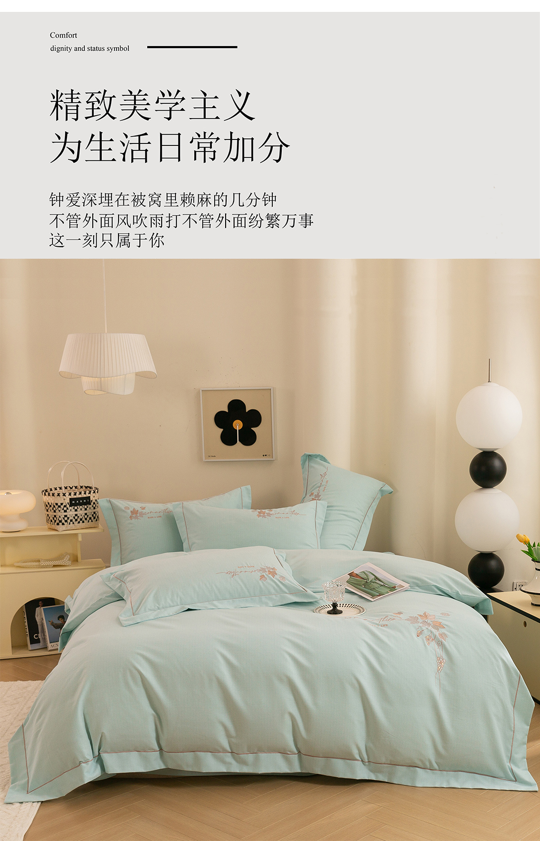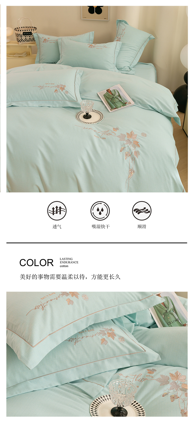 (总)绒博士 2025新款270克牛奶绒双拼角刺绣宽边款四件套--维也纳系列,维也纳-粉豆沙,维也纳-果绿,维也纳-浅咖,维也纳-浅蓝