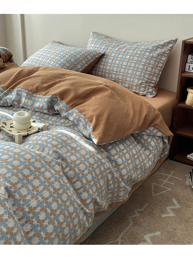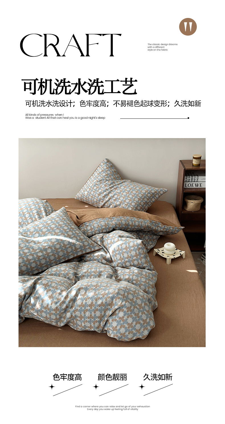 (总)水洗的故事 2025新款全棉色织水洗棉四件套,简序-粉,简序-灰,简序-蓝,简序-米黄,绿韵,樱织,云汐,紫韵粉格