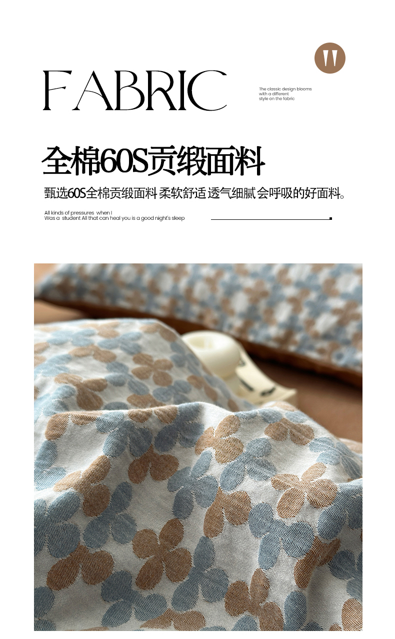 水洗的故事(原有乐家) 2025新款秋冬60s全棉贡缎色织大提花四件套 四月里-云水蓝