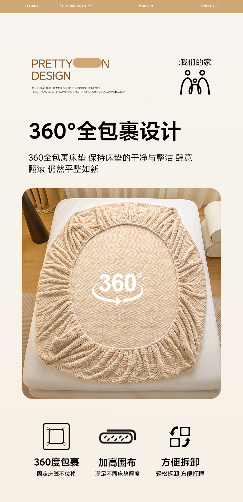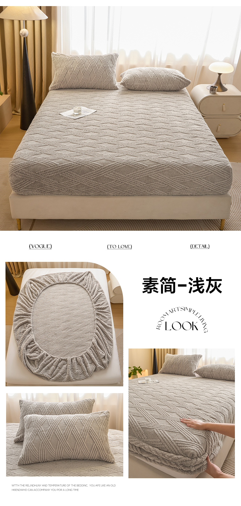 (总)欧邦 2025新款提花暖阳绒单床笠,苍穹蓝,初雪白,海棠粉,慕斯灰,青瓷绿,檀木咖
