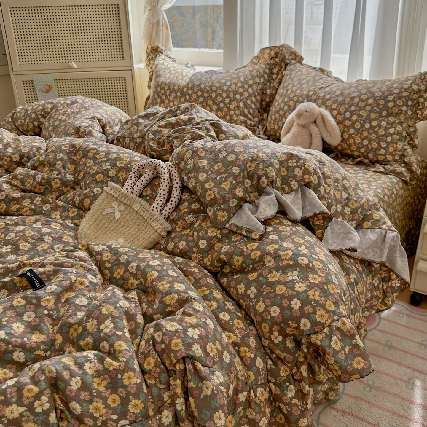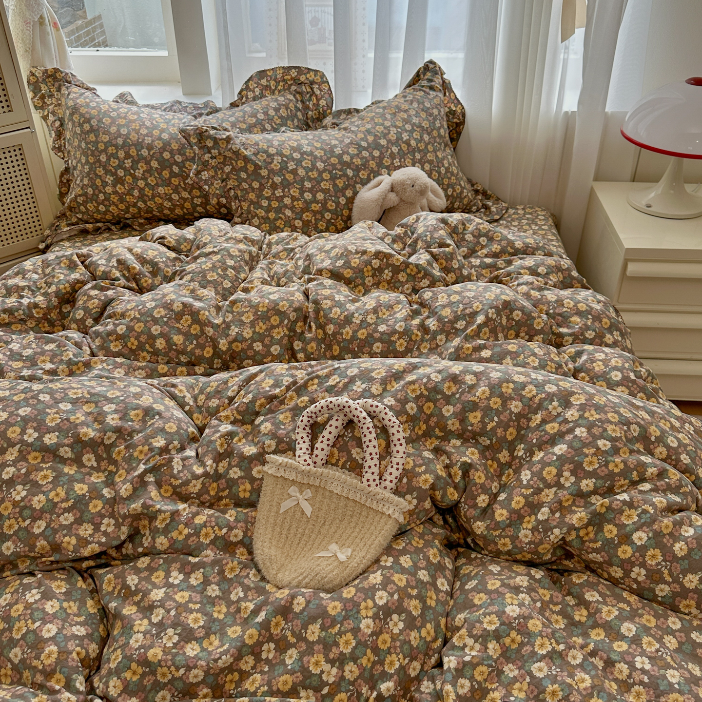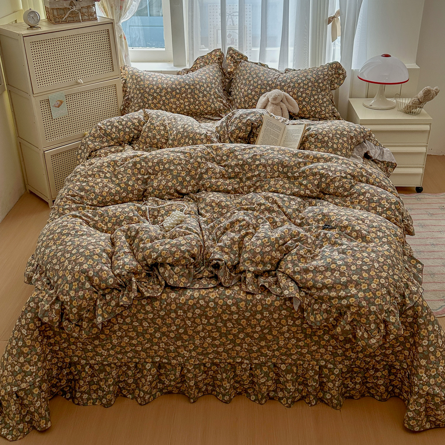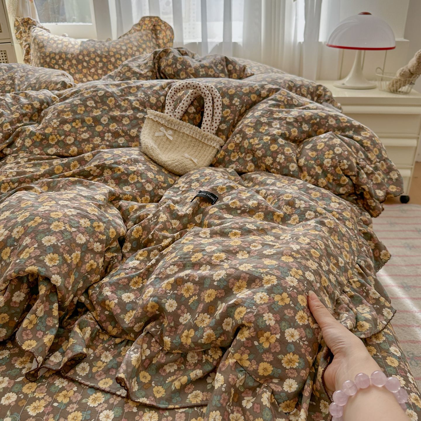 (总)欧尚 2026新款花边床盖四件套,春和,花束,花野,灰樱桃,咖爱心,咖豹纹,咖啡小猫,梨花落,绿爱心,梦境,木马,奶油波点,暖橘枝,暖心,人间草木,田园兔,小女孩,星愿,摇摇马,紫爱心,紫豹纹,紫苏