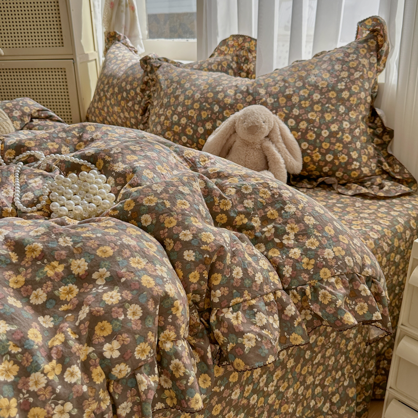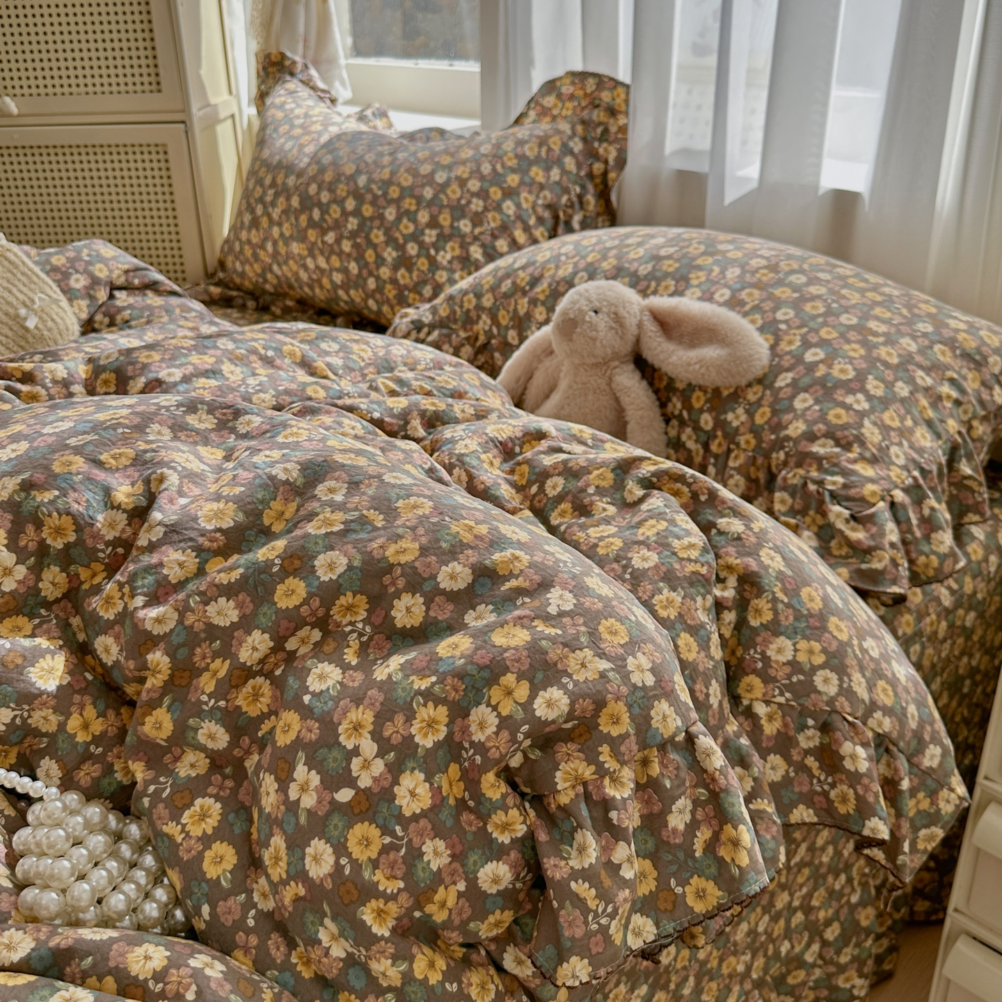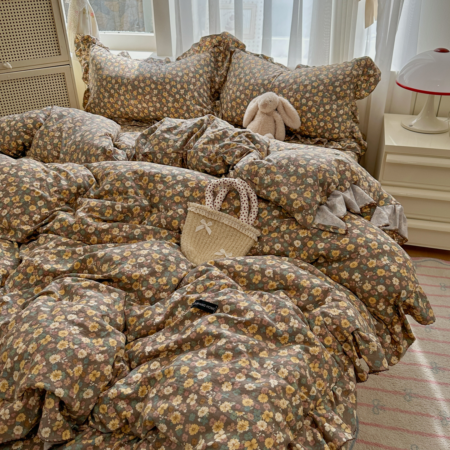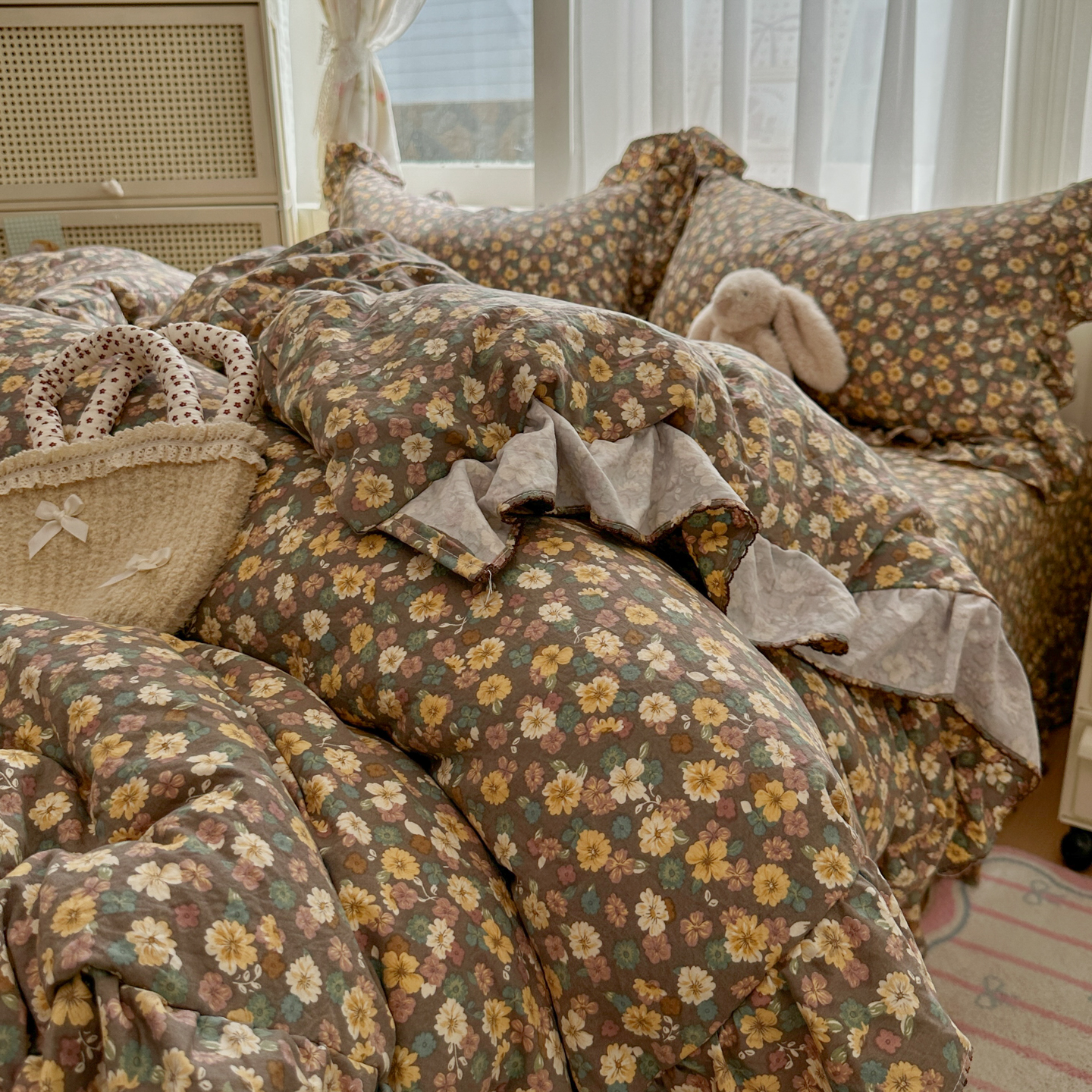 (总)欧尚 2026新款花边床盖四件套,春和,花束,花野,灰樱桃,咖爱心,咖豹纹,咖啡小猫,梨花落,绿爱心,梦境,木马,奶油波点,暖橘枝,暖心,人间草木,田园兔,小女孩,星愿,摇摇马,紫爱心,紫豹纹,紫苏
