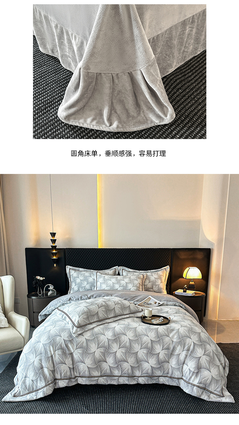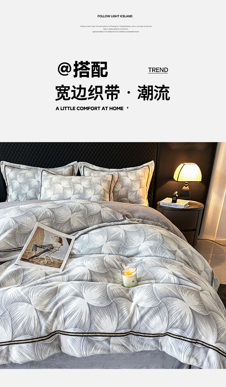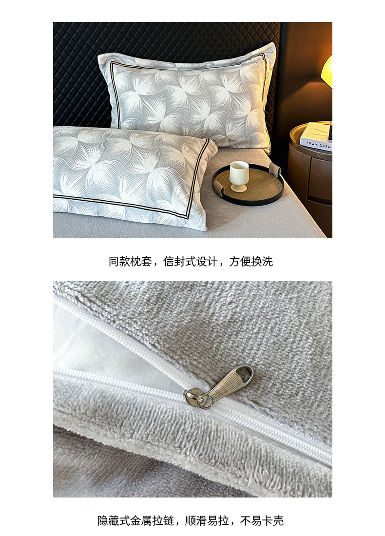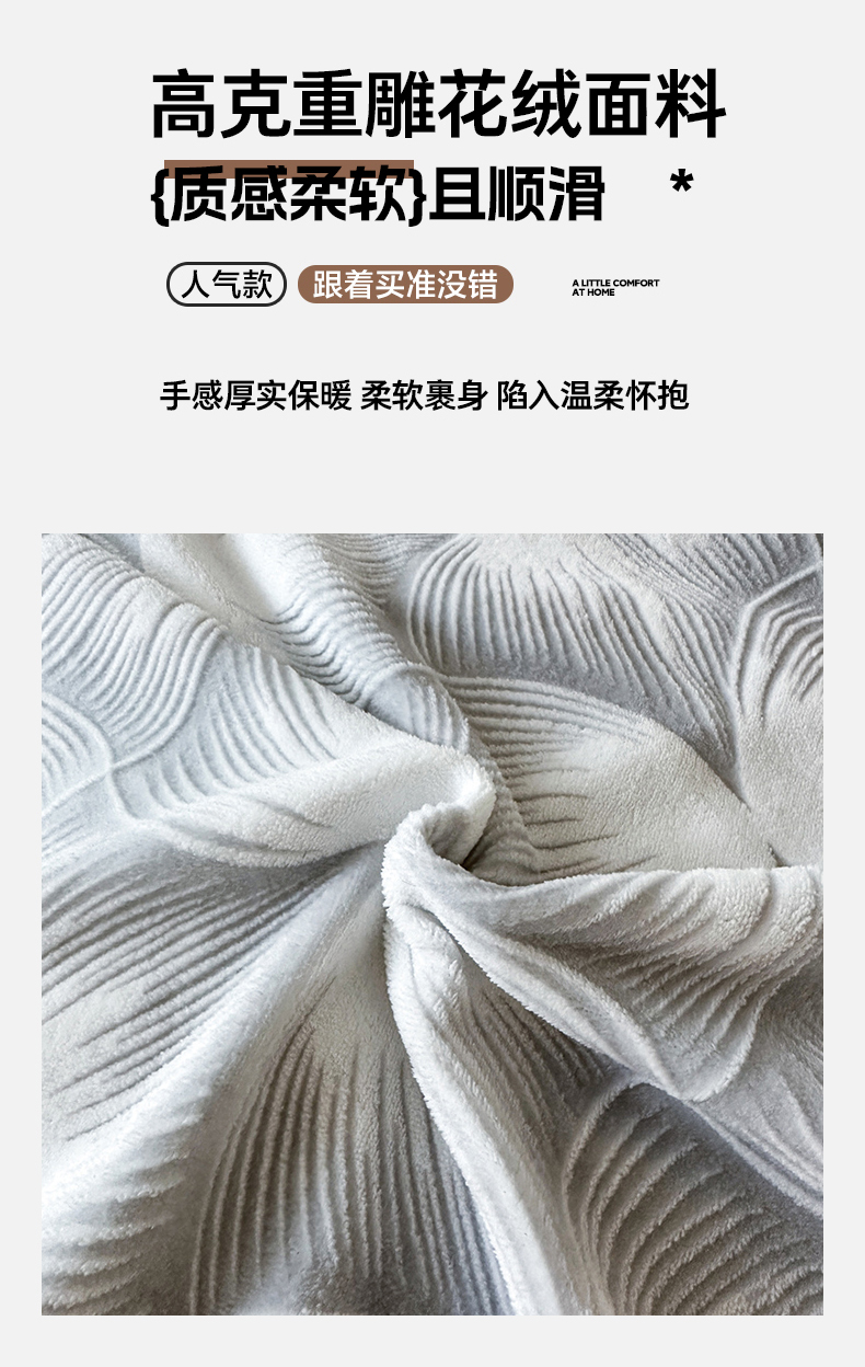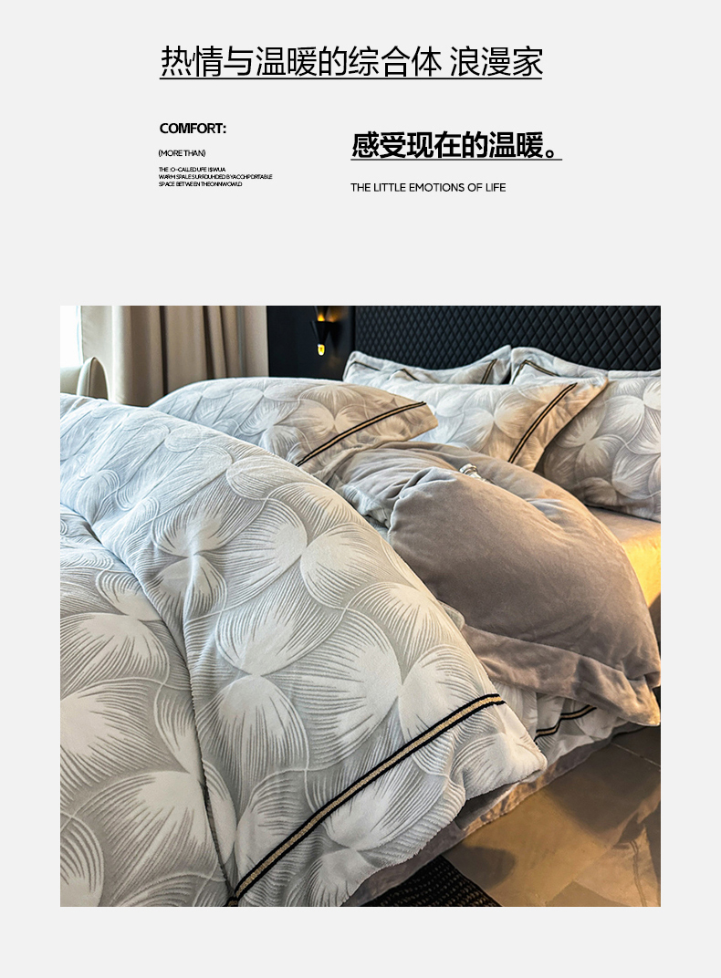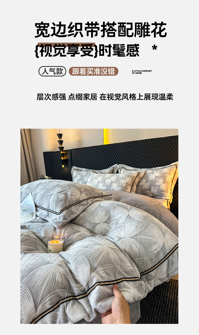 商品名称:诺梵家纺 2025新款8.2斤宽边织带雕花绒牛奶绒四件套 巴洛克-灰